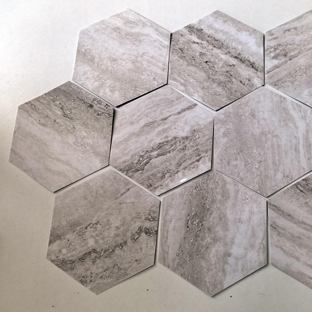 10 panouri hexagonale autoadezive - mozaic gri