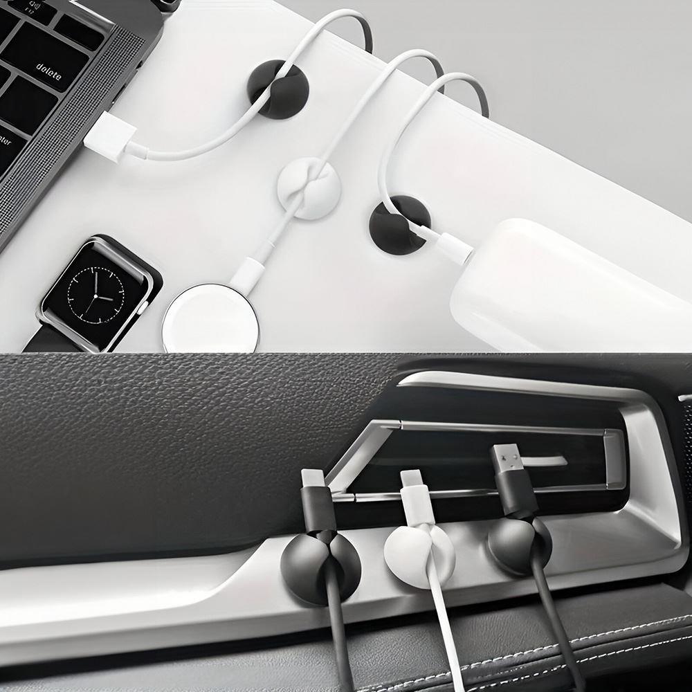 Suportul poate fi folosit acasă, la birou sau în mașină. Vă ajută, de exemplu, să organizați mai bine cablurile de sub biroul de lucru. Prinde cablul de alimentare pe noptieră, astfel încât să nu mai fie nevoie să căutați încărcătorul în întuneric. Sau fixează cablul de la navigație pe bordul mașinii, ca să nu vă încurce în timpul condusului. Suportul vă ajută să mențineți cablurile ordonate și mereu la îndemână.