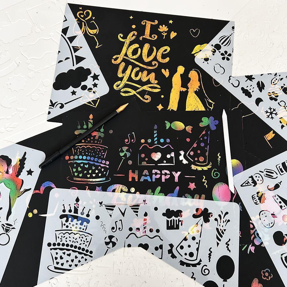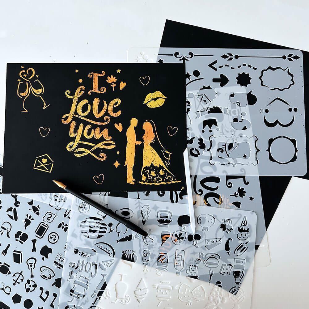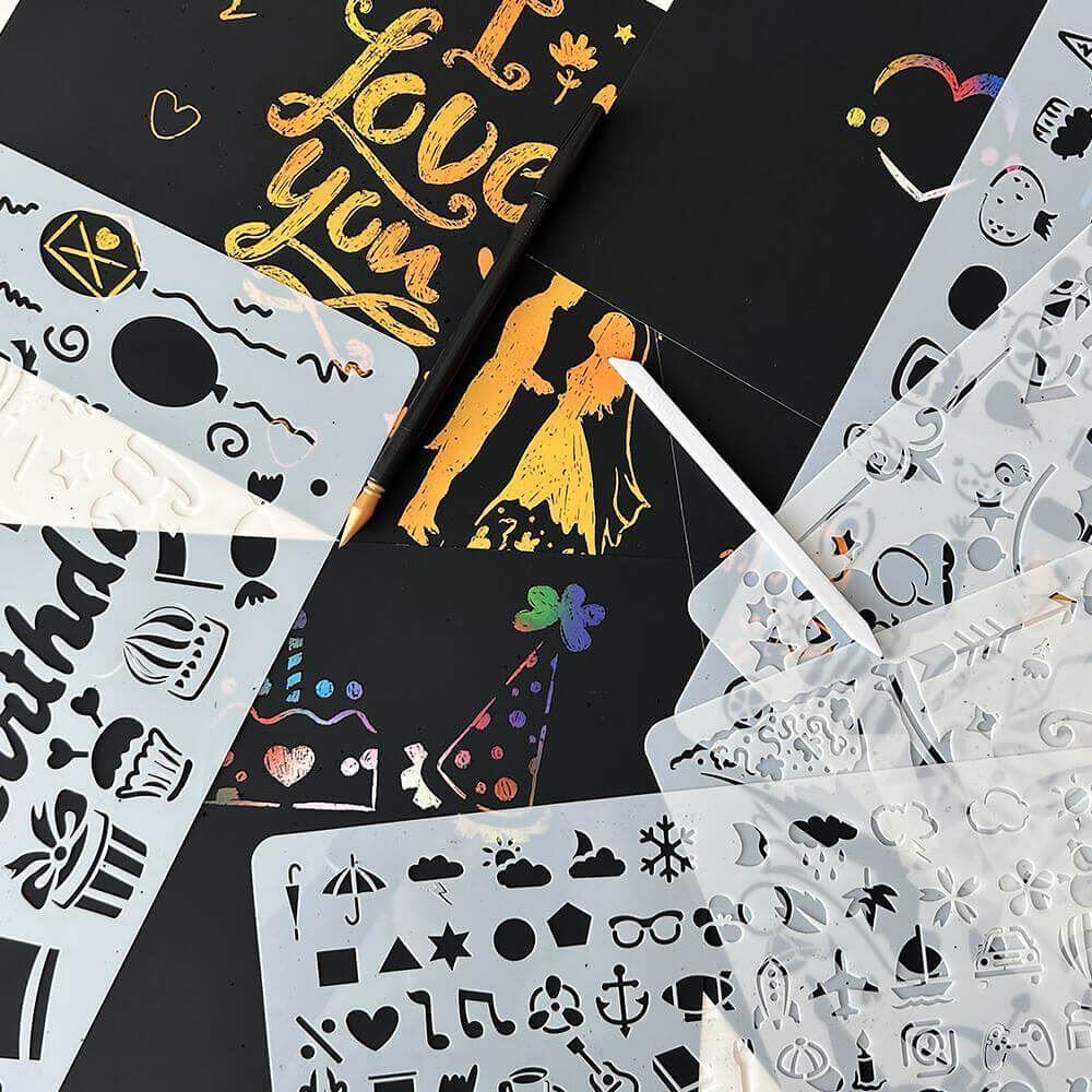 5 șabloane de zgâriere format A4 + 2 stilouri