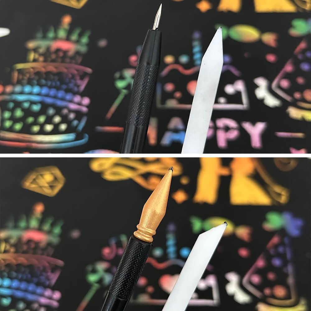 • 5 hârtii pentru zgârieturi (3 colorate, 2 aurii)