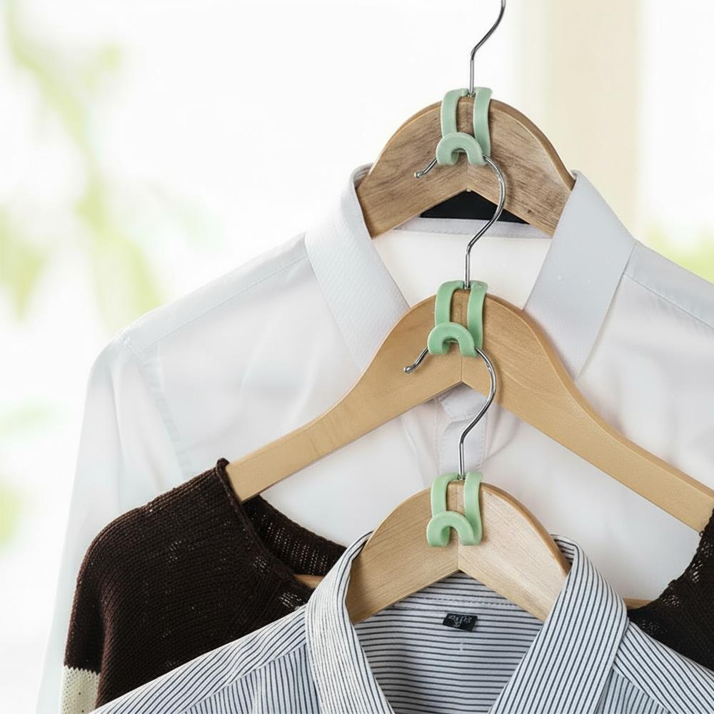 Fă parte dintre cei care cumpără mereu haine noi? Chiar dacă dulapul tău nu mai are niciun spațiu liber, iar hainele cad de pe umerașe sau sunt prea înghesuite? Atunci aceste cârlige sunt alegerea perfectă pentru tine. Cu ajutorul lor, poți agăța umerașele unul de celălalt. Doar prinzi cârligul de un umeraș, atârni următorul umeraș de acesta și poți continua așa până când dulapul tău are spațiu liber pe lungime.