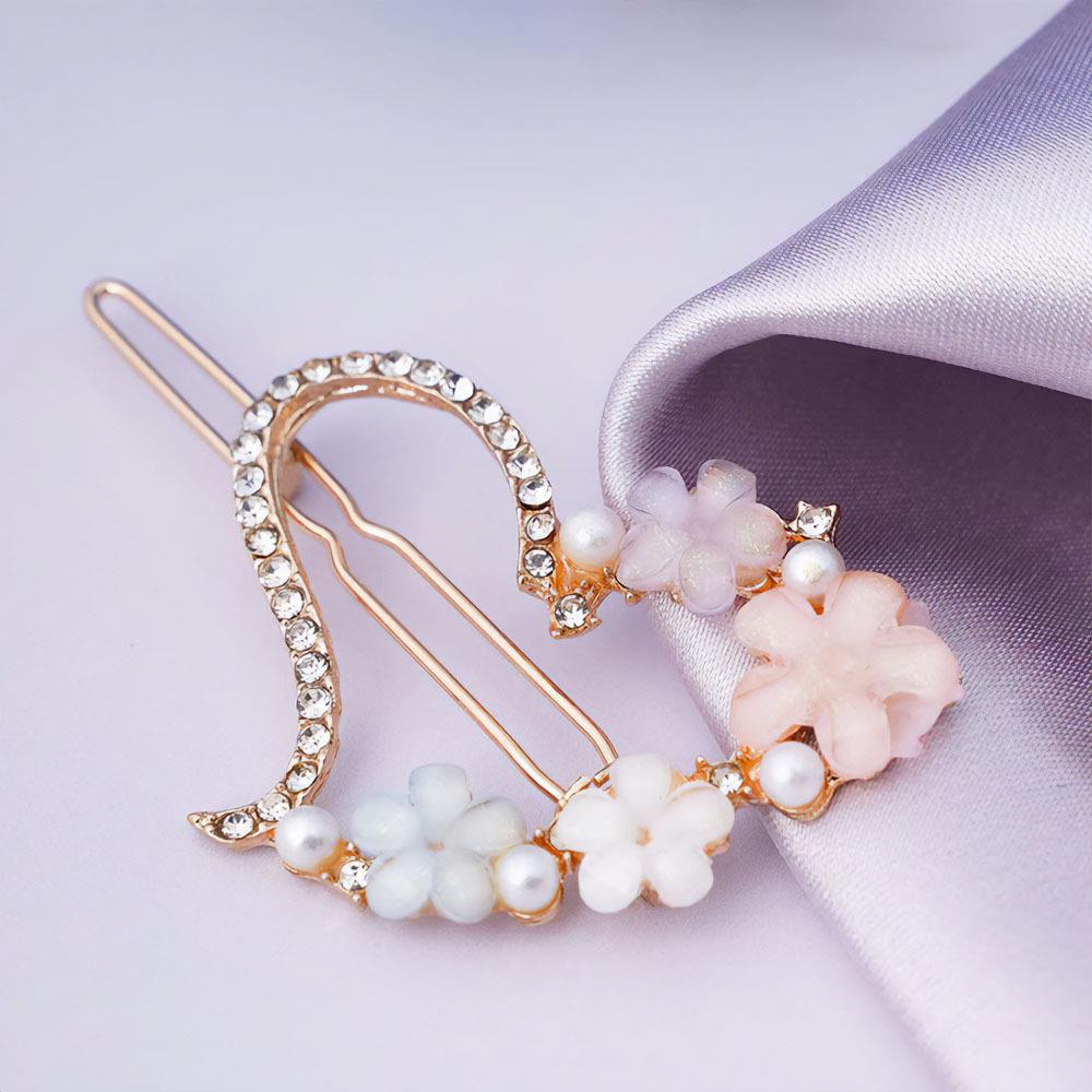 Sunt decorate cu flori, perle și pietricele strălucitoare, ceea ce le face să lucească frumos atât în lumina zilei, cât și sub lumină artificială. Se fixează excelent în păr, fie că ai părul fin sau coafuri bogate.