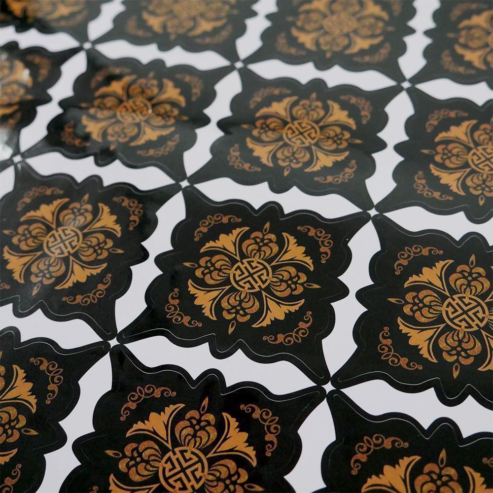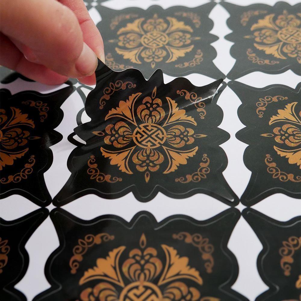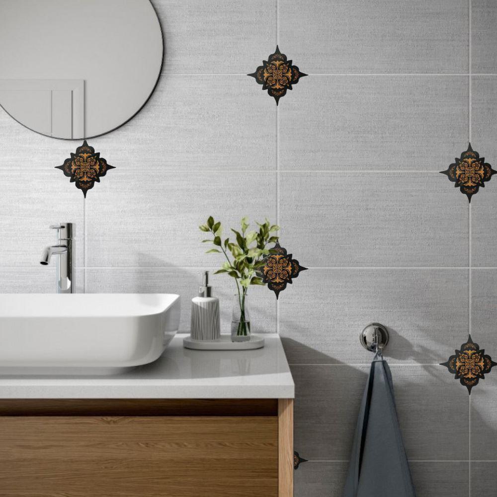 Designul frumos și elegant al abțibildurilor se potrivește în special pe pardoseli sau faianță deschisă la culoare. Totuși, dacă preferați decorațiuni mai puțin vizibile, motivul negru cu detalii maro poate fi aplicat și pe suprafețe închise la culoare. Și acolo va îndeplini cu siguranță rolul de a înveseli și decora interiorul.