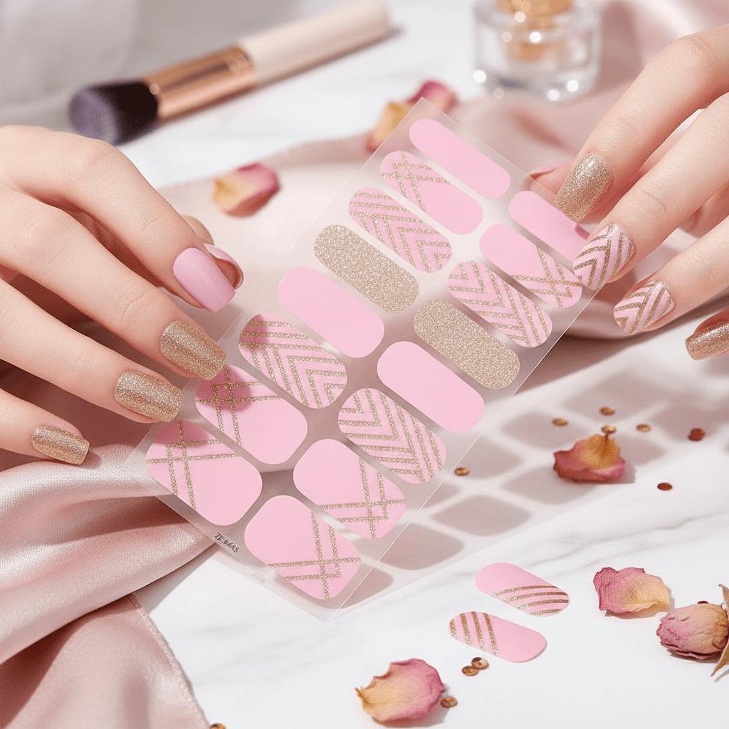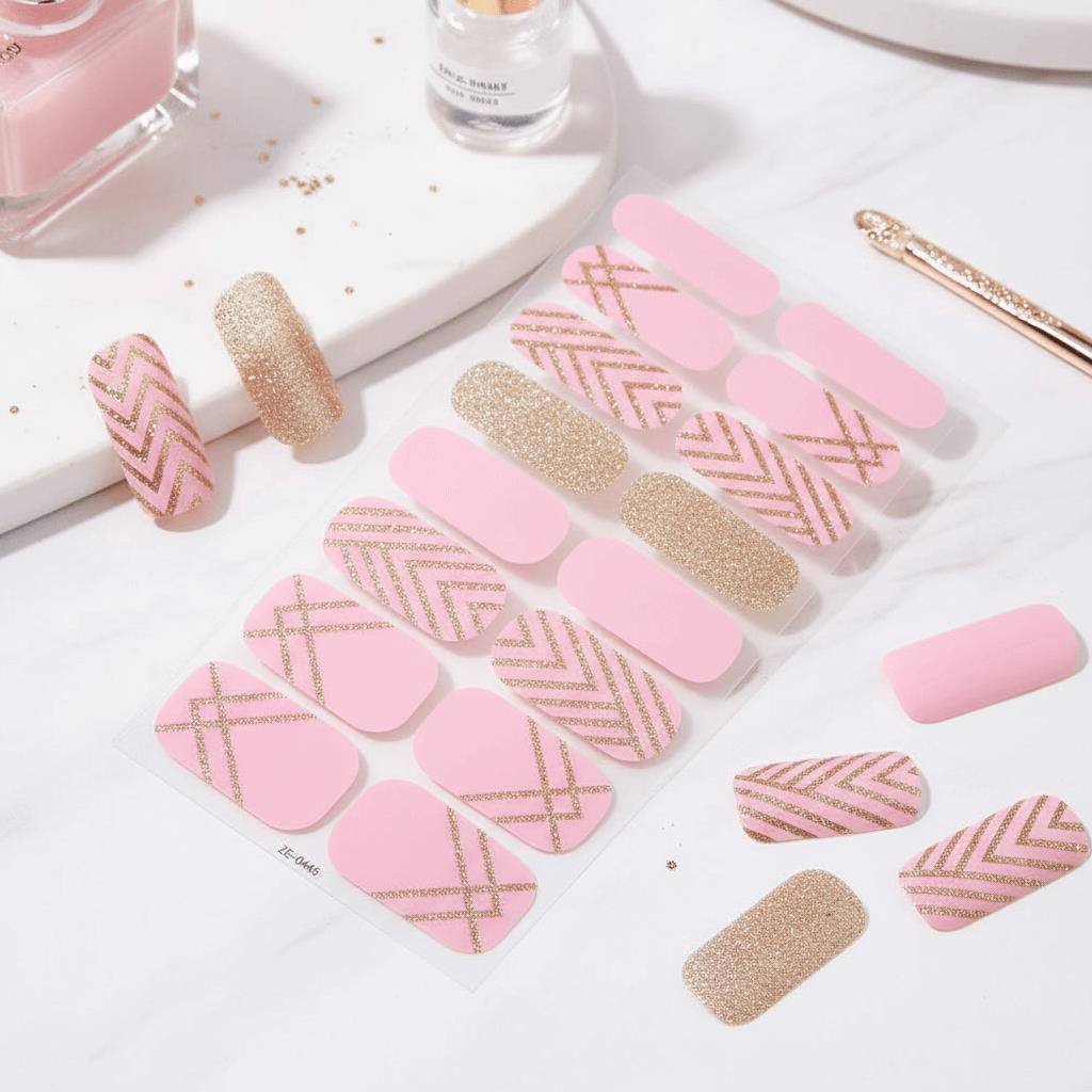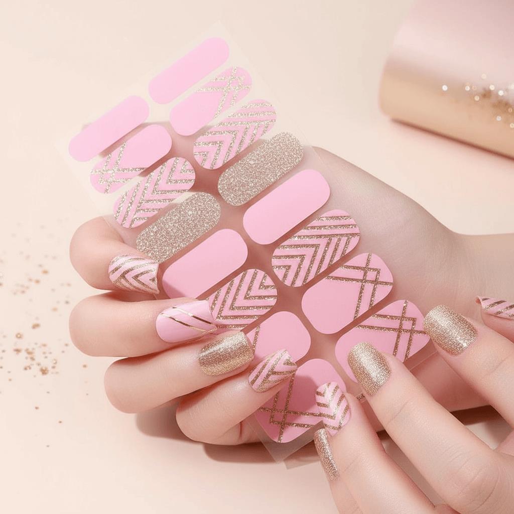 Autocolante pentru unghii - roz auriu