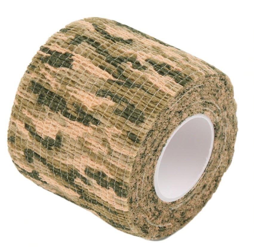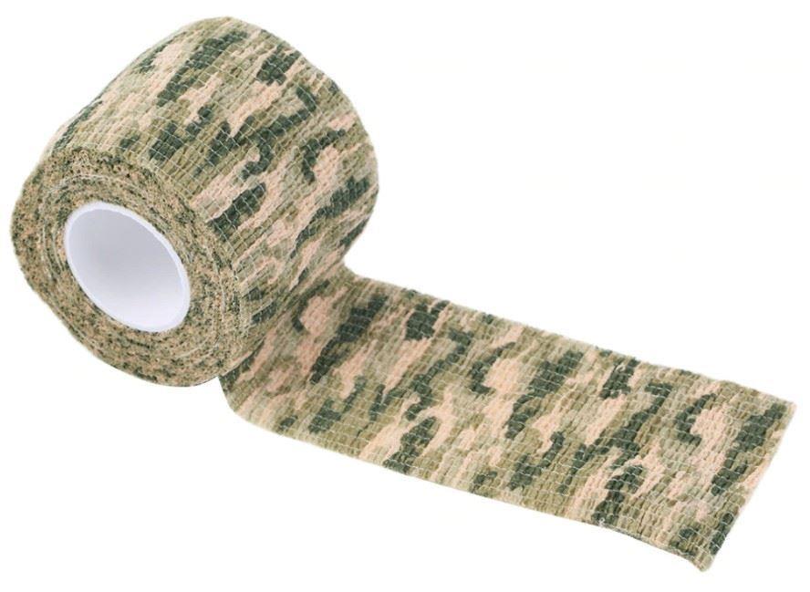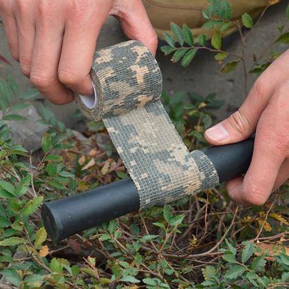 Banda adezivă din material textil elastic în camuflaj militar este potrivită pentru camuflarea majorității suprafețelor datorită efectului autoadeziv. Avantajul este că nu lasă urme de lipici pe obiecte, astfel încât dacă vă plictisiți de acest design, pur și simplu o desfaceți și obiectul nu va fi deteriorat. Este reutilizabilă și ușor de îndepărtat.
