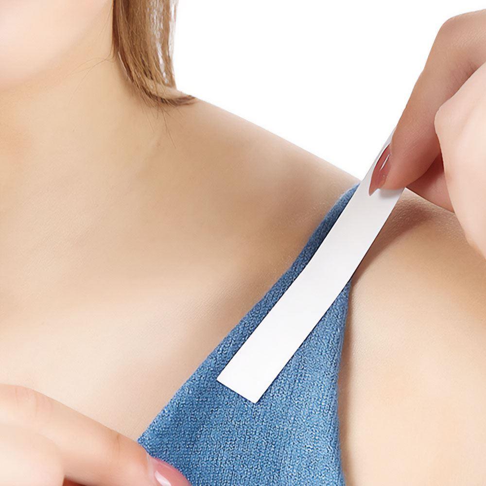 Bandă de modă adezivă dublă față pentru haine: Această bandă de modă revoluționară este un accesoriu esențial pentru oricine dorește să își păstreze ținuta perfectă pe tot parcursul zilei! Banda este proiectată pentru a fixa ferm și discret îmbrăcămintea de pielea ta sau de alte piese de îmbrăcăminte, prevenind astfel deplasările neplăcute și asigurându-te că aspectul tău rămâne absolut impecabil. Ideală pentru rochii cu decolteu adânc, despicături înalte, guler, umeri dezgoliți.