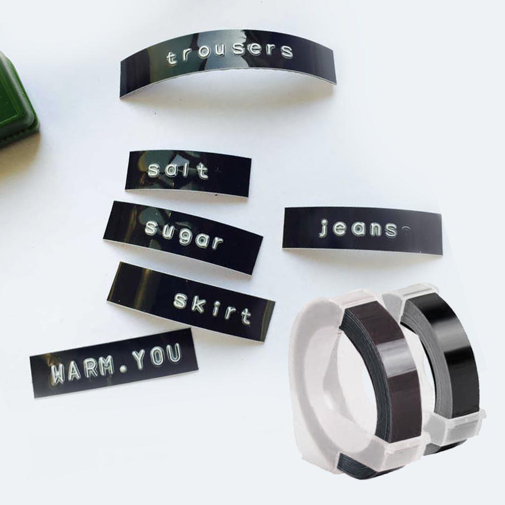 Pe banda neagră puteți embosa literele sau cifrele dorite. Banda se introduce ușor în etichetator. Etichetatorul taie înscripția gata făcută, pregătită pentru lipire. Etichetele 3D pe bandă neagră au un aspect modern și reprezintă o soluție practică.