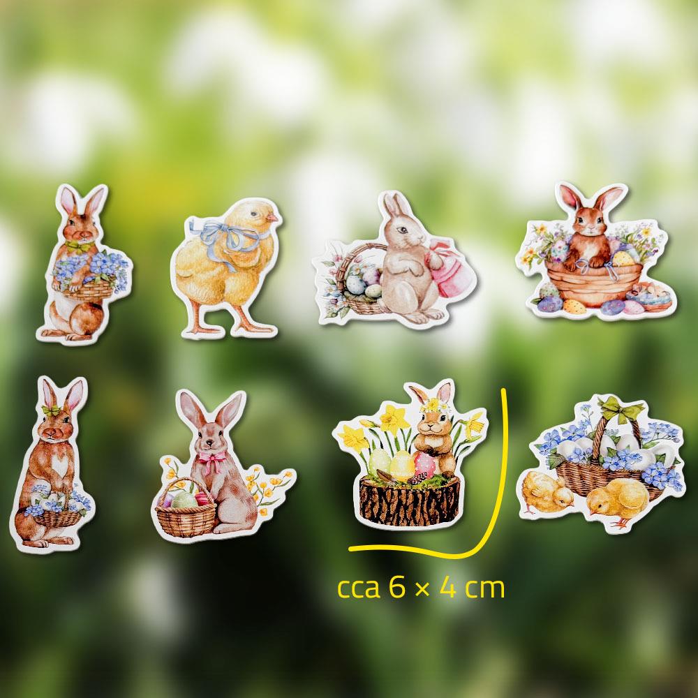 • Pachetul conține iepurași, puișori, bețișoare și autocolante