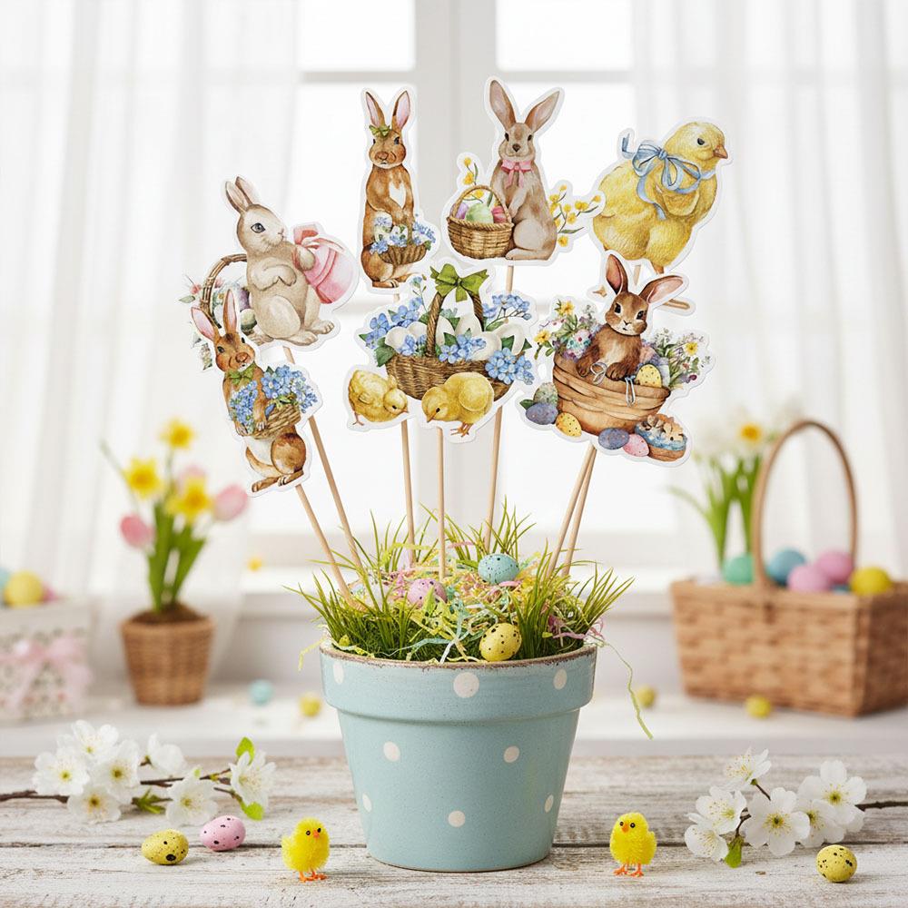 Decorurile pentru Paște sunt accesorii mici, dar foarte frumoase, care adaugă veselie și o atmosferă festivă decorațiunilor de primăvară. Modelele drăguțe de iepurași și puișori ies în evidență în ghivece, aranjamente pascale, jardiniere și alte elemente decorative.