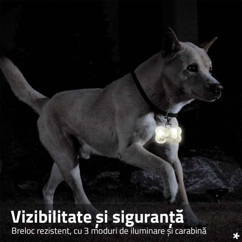 • Pandantivul asigură că câinele dvs. va fi vizibil chiar și pe întuneric