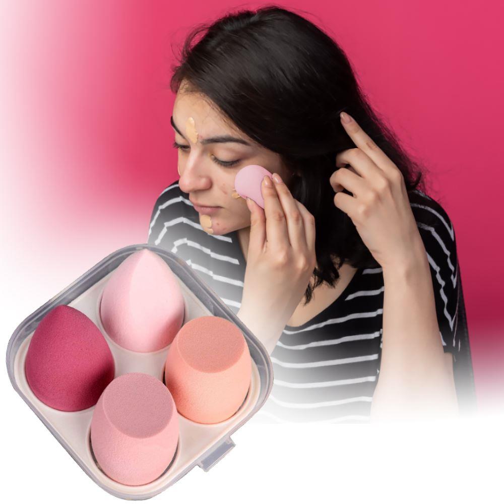 Bureții pentru machiaj sunt o parte indispensabilă a trusei cosmetice. Asigură o aplicare perfectă a fondului de ten sau a pudrei. Cele 4 bureți sunt ambalați într-o cutie din plastic. Au 4 forme diferite și pot fi folosiți atât umezi (fond de ten), cât și uscați (pudră). Dacă bureții sunt umeziți cu apă, își măresc volumul.