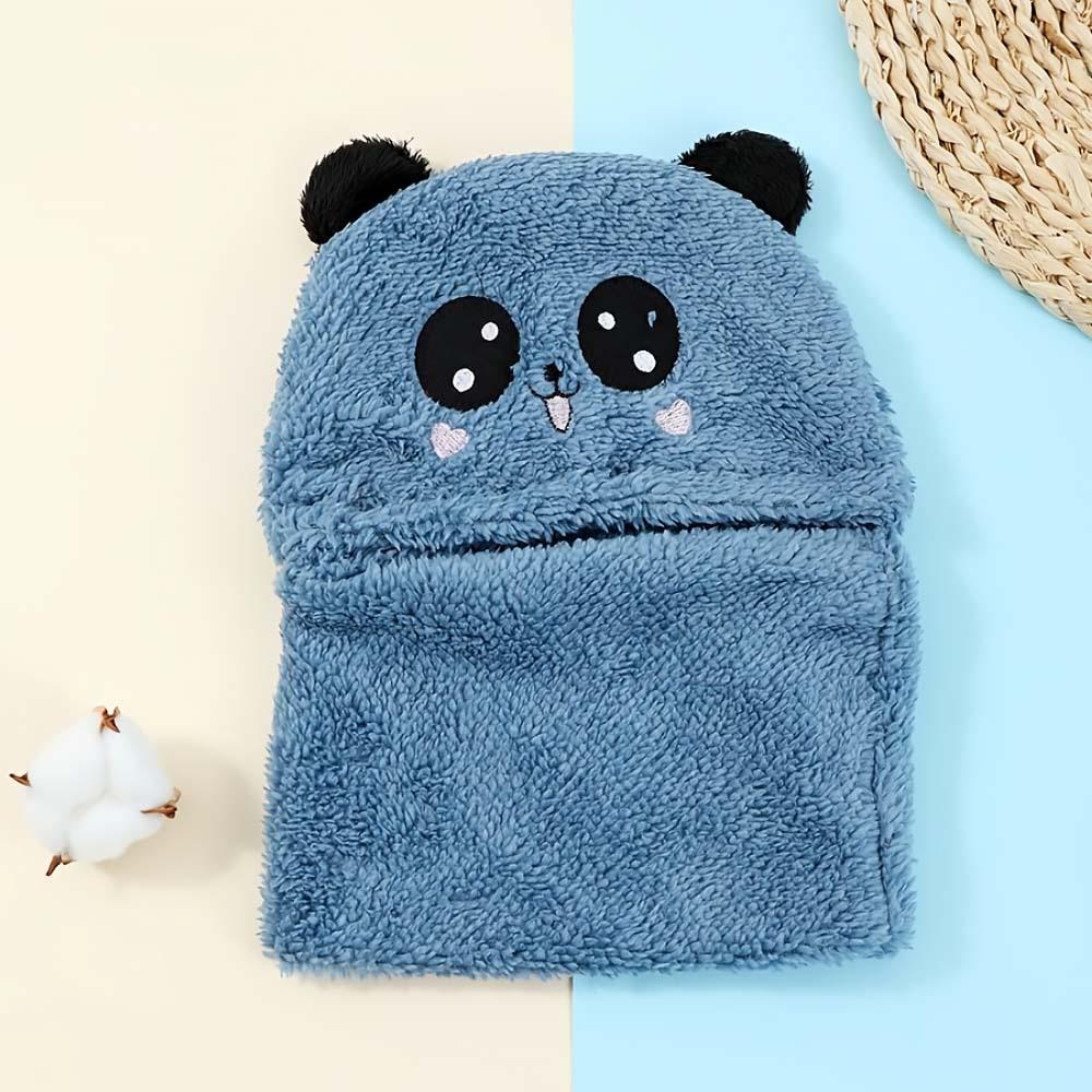 Căciulă cu guler tip ursuleț, cu urechi - albastru