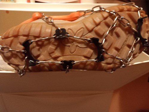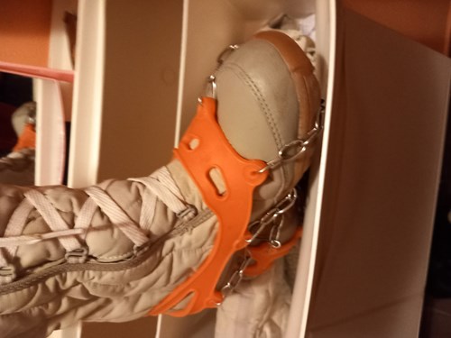 Datorită faptului că sunt realizate dintr-un material de cauciuc extensibil, le puteți pune pe orice tip de încălțăminte. Sunt universale. Cele 8 cuie vă protejează de căderi și alunecări neplăcute. Capacele au o parte din cauciuc care se întinde peste botină și un lanț metalic pe care sunt prinse cuiele. Cu acestea pe drum, vă veți simți mai în siguranță. În plus, sunt ușoare și ușor de transportat. Le puteți pune cu ușurință în backpack.