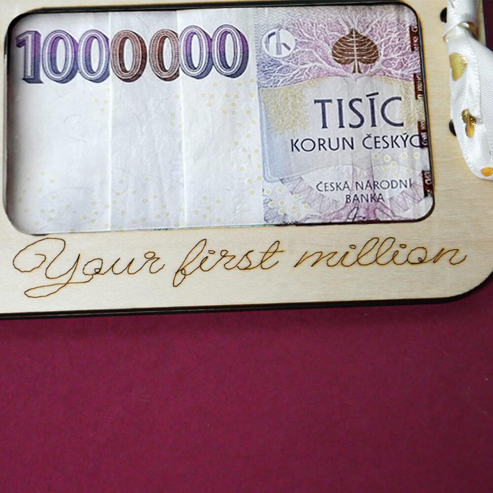 Vă gândiți cum să oferiți bani proaspeților căsătoriți într-un mod original? O cutie de lemn cu inscripția gravată „Primul tău milion” este o opțiune frumoasă și amuzantă, care captează atenția de la prima vedere. Designul frumos din lemn, cuplul gravat și fundițele decorative adaugă întregului cadou un aer romantic. E suficient să introduceți câteva bancnote astfel încât să creeze un „efect de milion” și ați terminat! În loc de un plic clasic, oferiți ceva care are suflet și o poveste. Acest cadou original arată că vă pasă cu adevărat de proaspeții căsătoriți. Faceți-i fericiți într-un mod pe care nu-l vor uita prea curând.