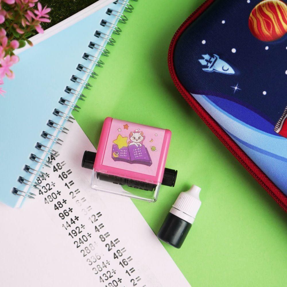 Cu această ștampilă, veți scrie în câteva secunde mai multe exemple. Copiii își vor exersa astfel cunoștințele și abilitățile matematice. Ștampila funcționează astfel încât puteți seta cifrele care vor apărea în exemple, apoi trebuie doar să treceți peste hârtie, iar ștampila va imprima câteva exemple pentru calcul. Numerele pot fi schimbate cu ușurință prin rotirea rotiței de pe ambele părți ale ștampilei. Datorită acestui fapt, puteți varia exemplele, astfel încât să nu fie la fel. În pachet este inclus și un rezervă de cerneală.