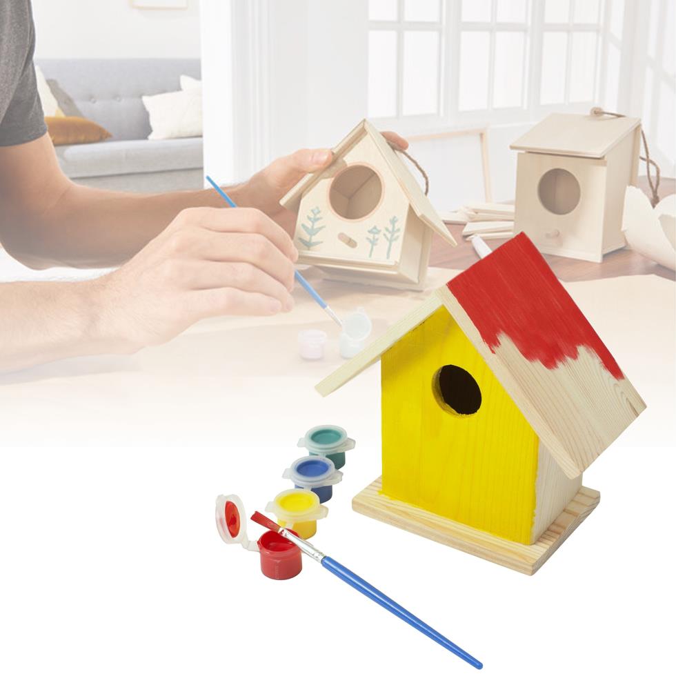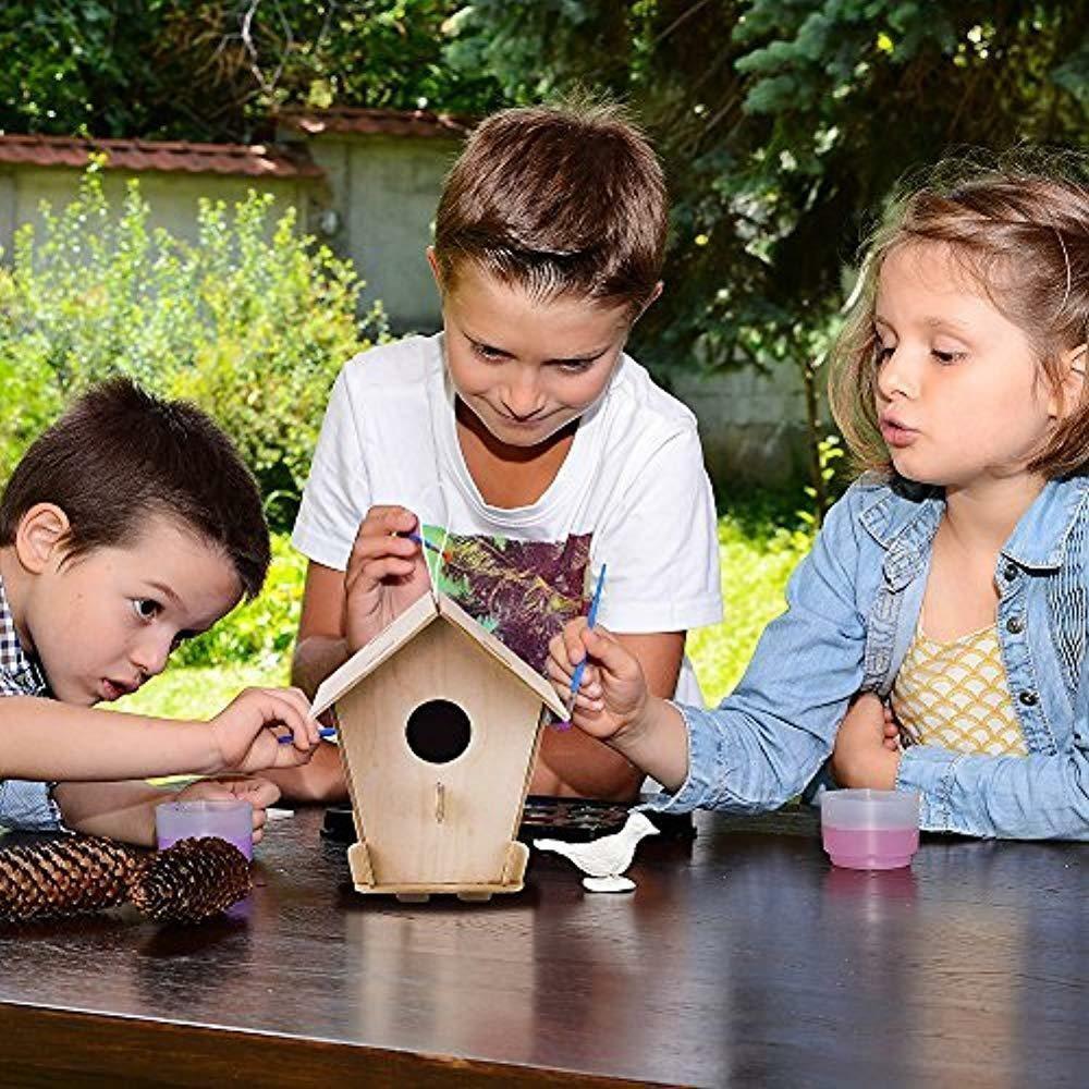 Distracție creativă și pentru cei mai mici. Decorează-ți propria boxă pentru păsări împreună cu copiii tăi.     - Distracție creativă - Poți atârna boxa oriunde dorești, folosind cârligul inclus - Vei avea nu doar un obiect de decor, ci și unul practic Copiii tăi pot combina utilul cu plăcutul. Distracția creativă pentru cei mici este aici. Va fi cu atât mai distractivă deoarece vor putea crea o casă frumoasă pentru păsări. Dacă copiii tăi își plac să-și coloreze și să-și picteze lucrurile, această distracție creativă este perfectă pentru ei. În pachet veți primi o placă de lemn, patru culori și un penson pentru colorat. Copiii tăi îi pot invita pe prietenii lor la o distracție în grup și să-și petreacă după-amiaza colorând și decorând o casă frumoasă pentru păsări. Casa de lemn are inclus și un cârlig metalic pentru atârnare. Lucrarea finală o puteți agăța pe un copac sau oriunde altundeva. Video ilustrativ: