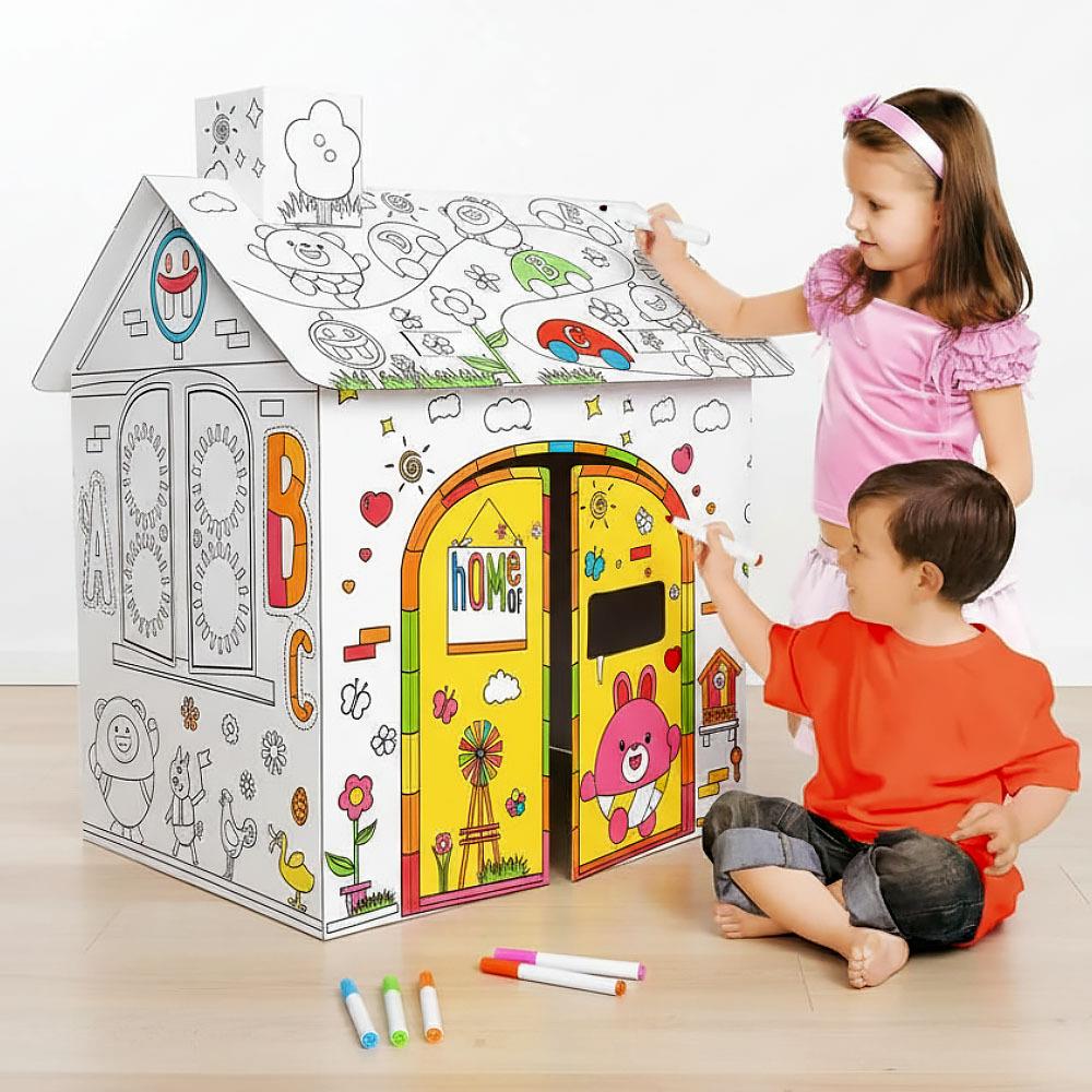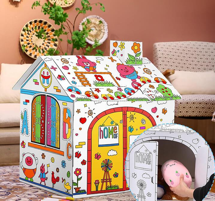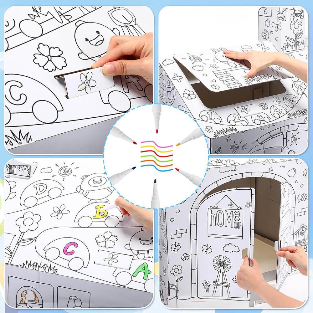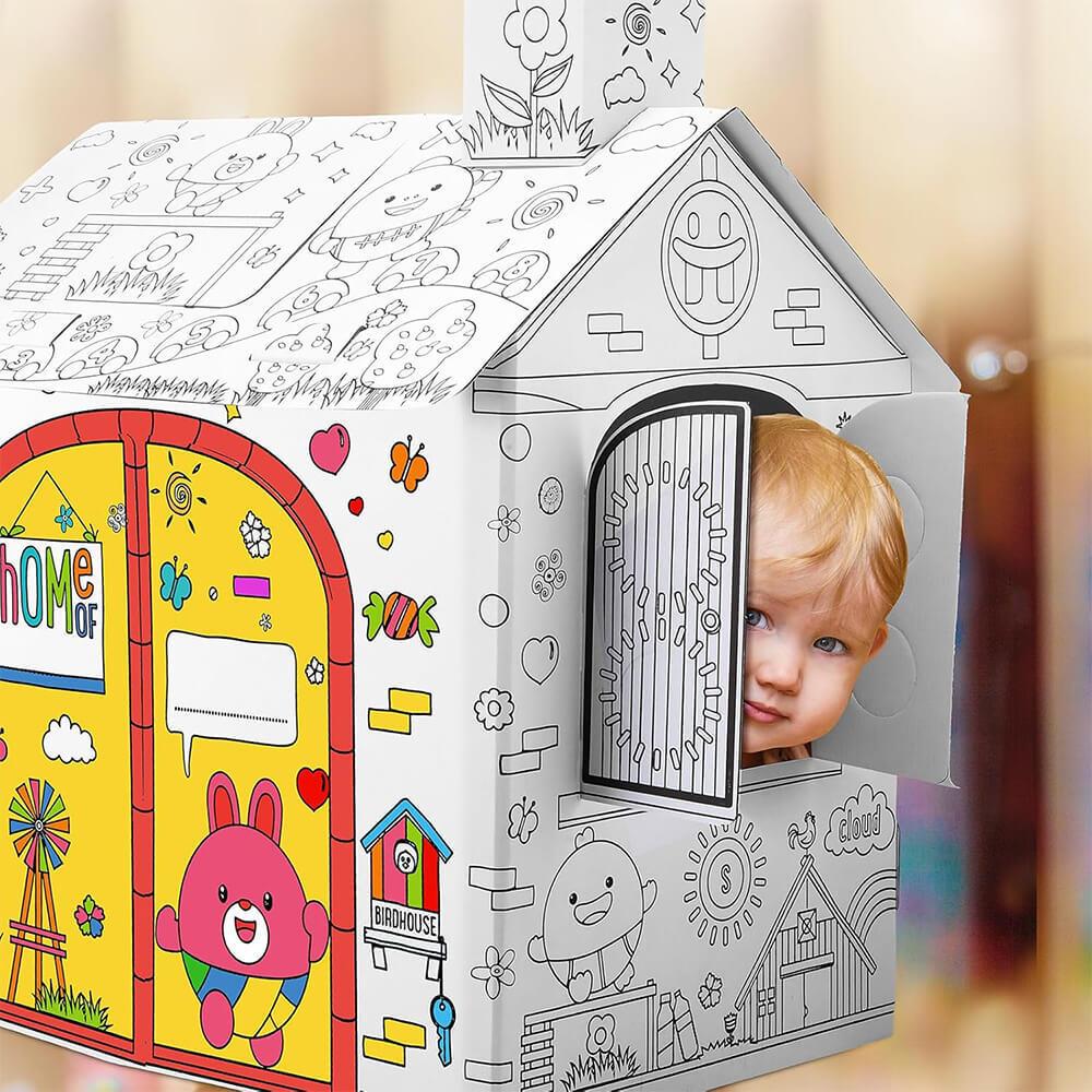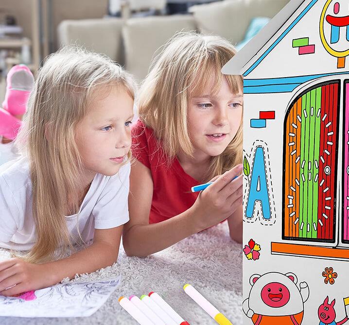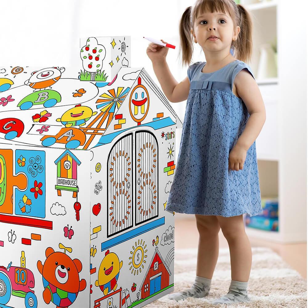 Căsuța de colorat pentru copii este jucăria ideală pentru copiii de toate vârstele. Copiii pot nu numai să-și construiască propria căsuță, ci și să o decoreze conform fanteziei lor. Datorită spațiului din interior, oferă un loc perfect pentru a se ascunde.