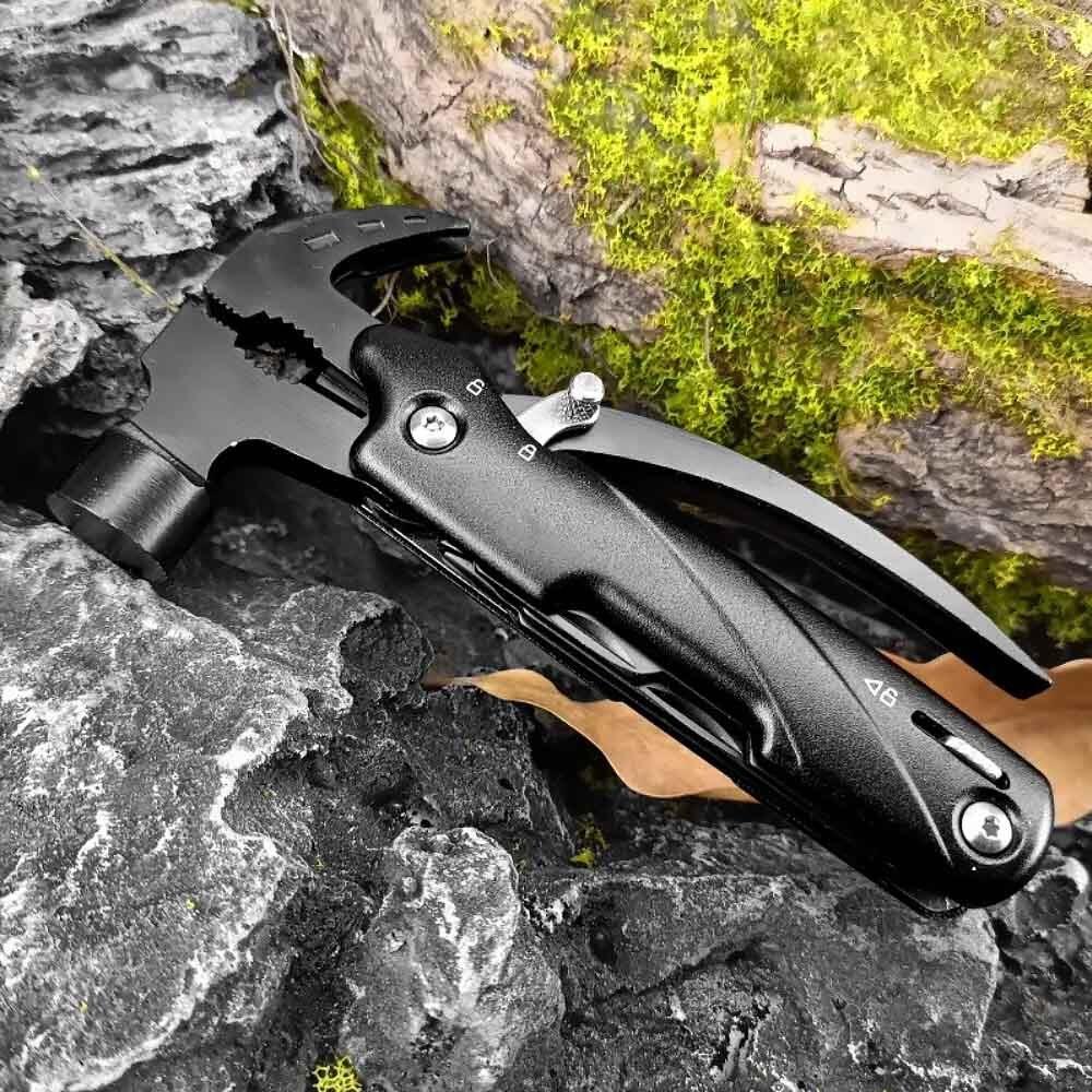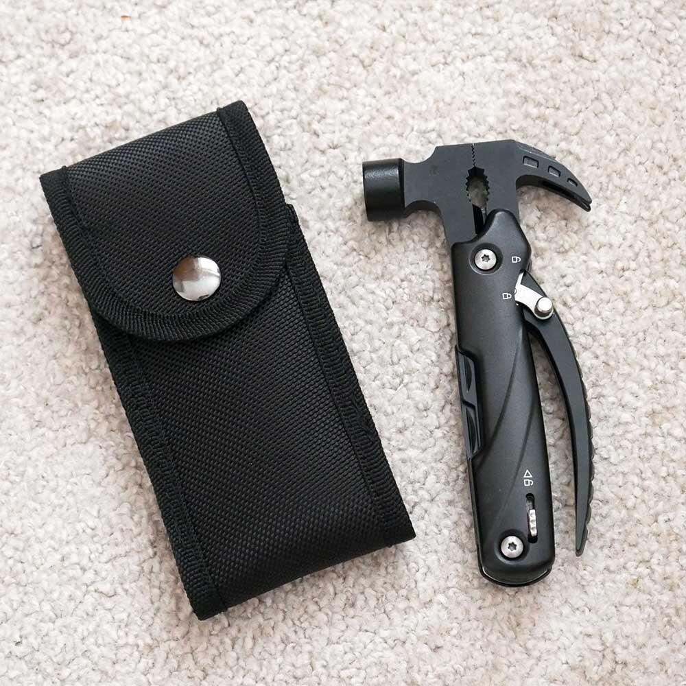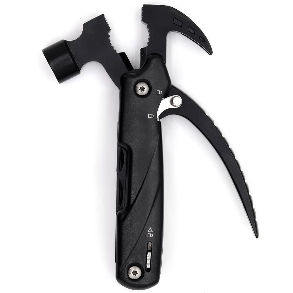 Vi se întâmplă uneori să fiți în excursie în natură și să aveți nevoie să reparați ceva sau să faceți o activitate, dar vă lipsește uneltele potrivite? Sau vi se strică ceva acasă și, ca un făcut, nu puteți găsi nici o șurubelniță sau altă unealtă? Atunci avem pentru dumneavoastră acest ciocan multifuncțional practic, care vă va ajuta de fiecare dată când va trebui să faceți ceva! Ascunde în el nouă unelte diferite care vă facilitează activitățile zilnice, fără să fie nevoie să cărați o mulțime de lucruri. În afară de ciocan, trusa funcționează și ca clește, fierăstrău, desfăcător, dar include și un cuțit, o șurubelniță plată și una în cruce, desfăcător, pilă și curățător de solzi de pește.