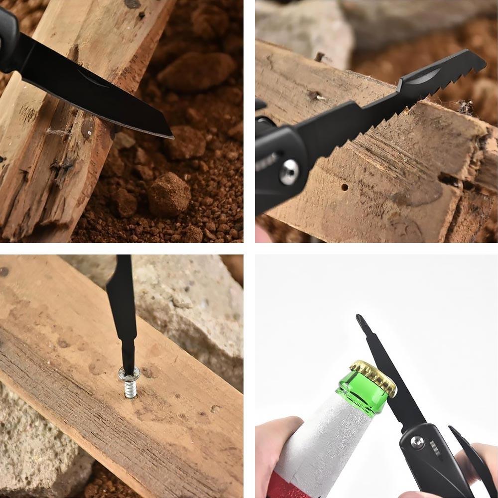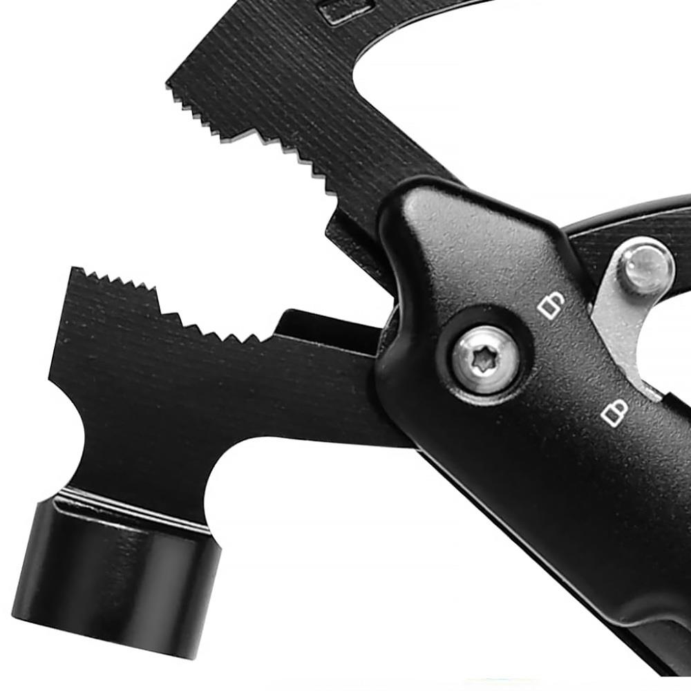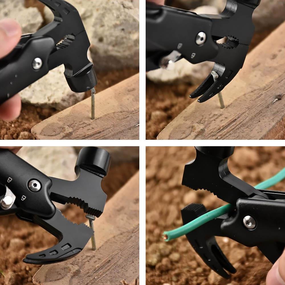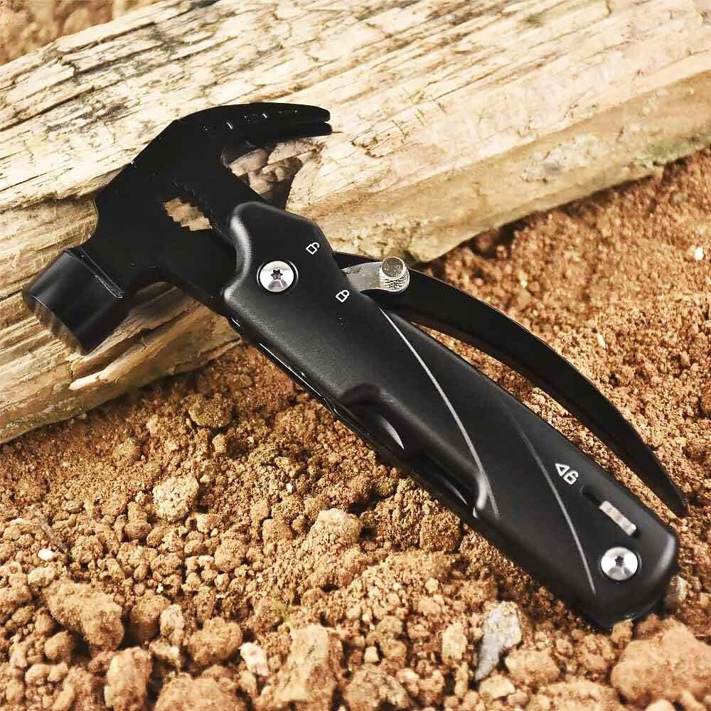 Vi se întâmplă uneori să fiți în excursie în natură și să aveți nevoie să reparați ceva sau să faceți o activitate, dar vă lipsește uneltele potrivite? Sau vi se strică ceva acasă și, ca un făcut, nu puteți găsi nici o șurubelniță sau altă unealtă? Atunci avem pentru dumneavoastră acest ciocan multifuncțional practic, care vă va ajuta de fiecare dată când va trebui să faceți ceva! Ascunde în el nouă unelte diferite care vă facilitează activitățile zilnice, fără să fie nevoie să cărați o mulțime de lucruri. În afară de ciocan, trusa funcționează și ca clește, fierăstrău, desfăcător, dar include și un cuțit, o șurubelniță plată și una în cruce, desfăcător, pilă și curățător de solzi de pește.