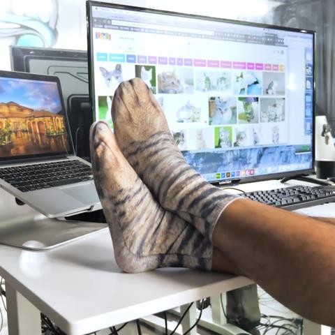 Imaginați-vă situația în care mergeți în vizită, vă descălțați și în loc să arătați niște șosete negre sau albe obișnuite, de sub pantaloni ies la iveală niște lăbuțe de pisică adorabile! Prietenii vă vor aprecia cu siguranță simțul stilului și originalitatea și, cu siguranță, îi veți amuza pe toți. Șosetele pot fi purtate atât de femei, cât și de bărbați, sunt fabricate într-o mărime universală și sunt confortabile la purtat. Șosetele originale le recomandăm ca un cadou amuzant pentru toți iubitorii de feline mici.