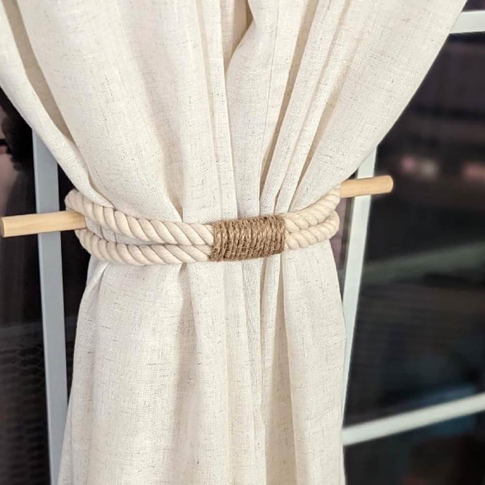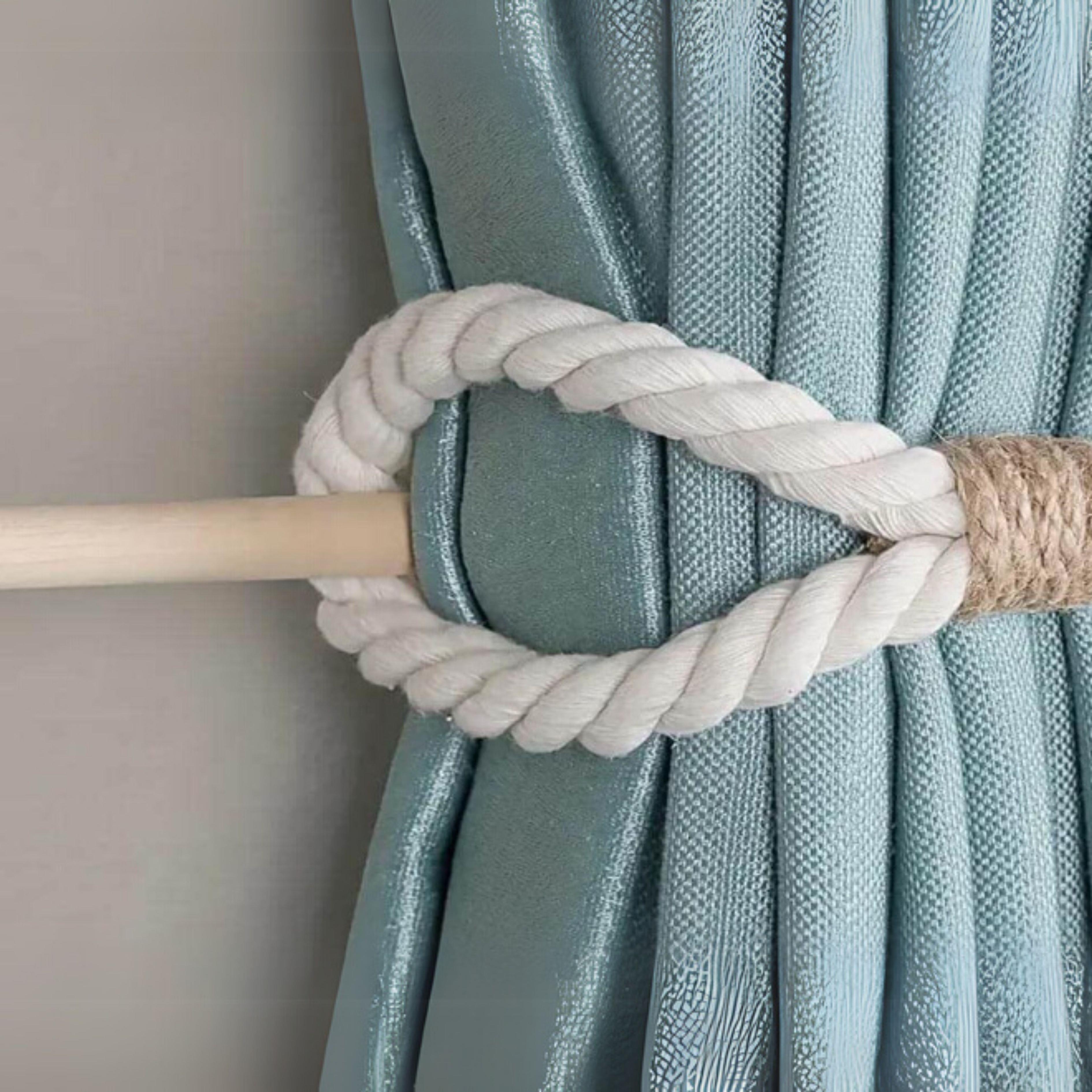 Această agrafă nu numai că va menține perdelele la locul lor, dar servește și ca un element de design remarcabil, care va oferi spațiului dumneavoastră un aspect cu totul nou. Instalarea este foarte ușoară – trebuie doar să înfășurați frânghia în jurul perdelei și să o asigurați cu o baghetă din lemn.