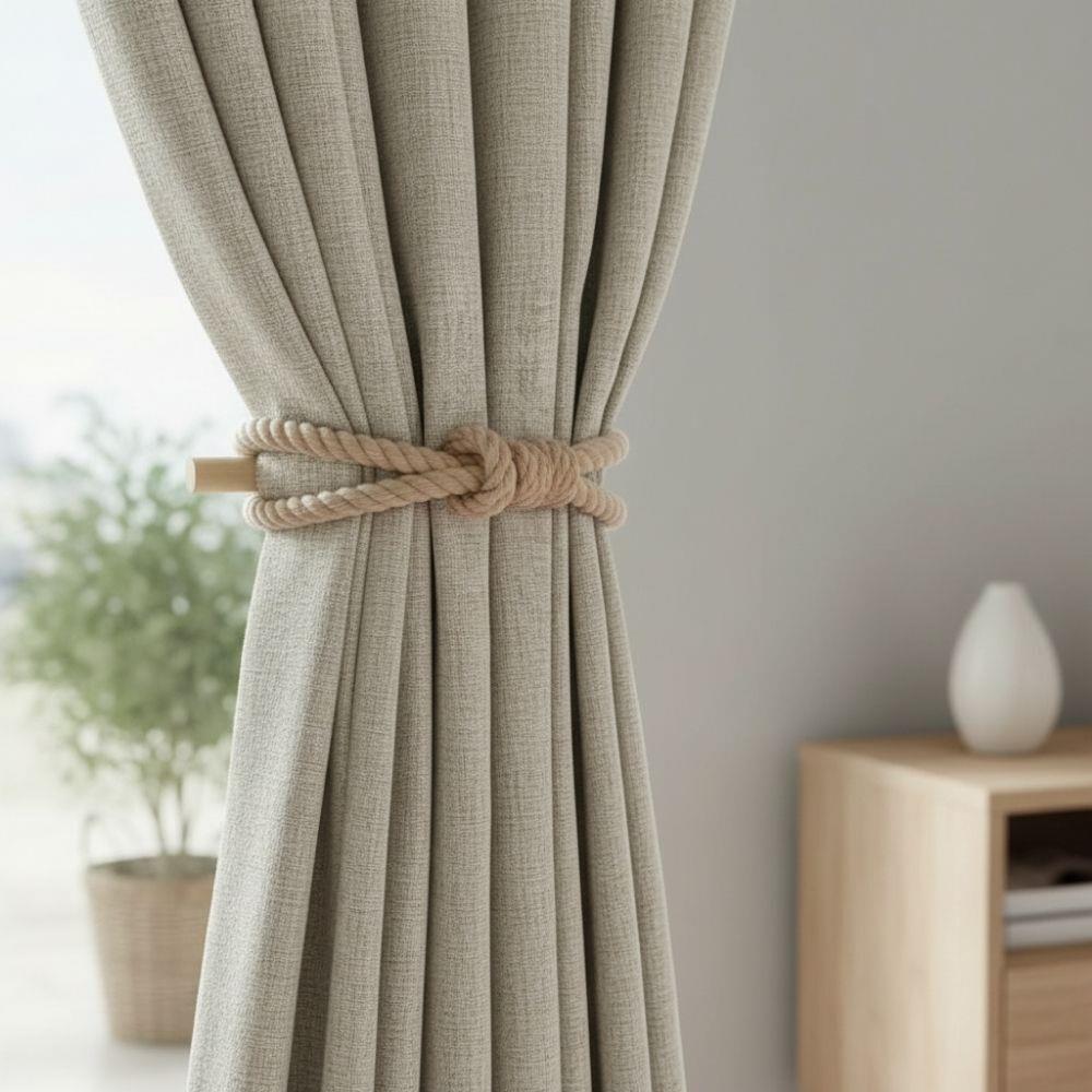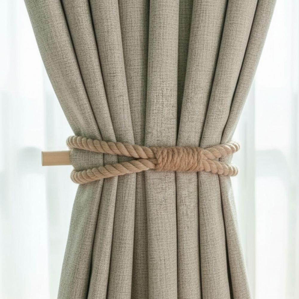 Această agrafă nu numai că va menține perdelele la locul lor, dar servește și ca un element de design remarcabil, care va oferi spațiului dumneavoastră un aspect cu totul nou. Instalarea este foarte ușoară – trebuie doar să înfășurați frânghia în jurul perdelei și să o asigurați cu o baghetă din lemn.