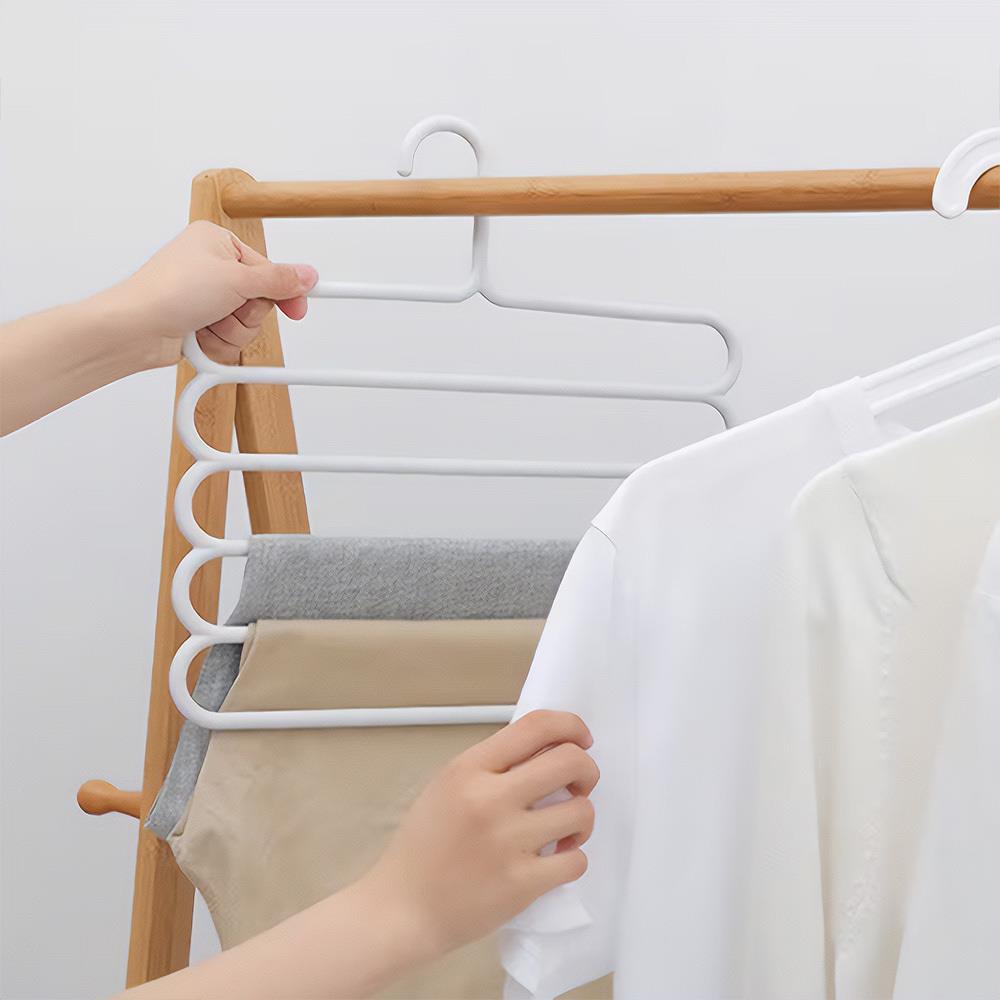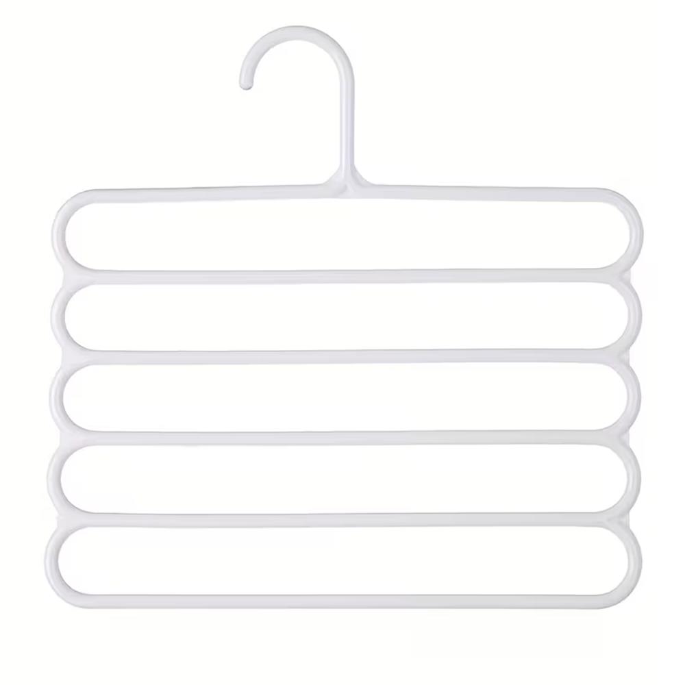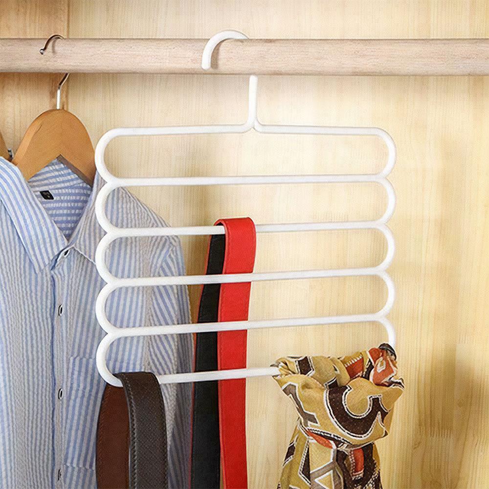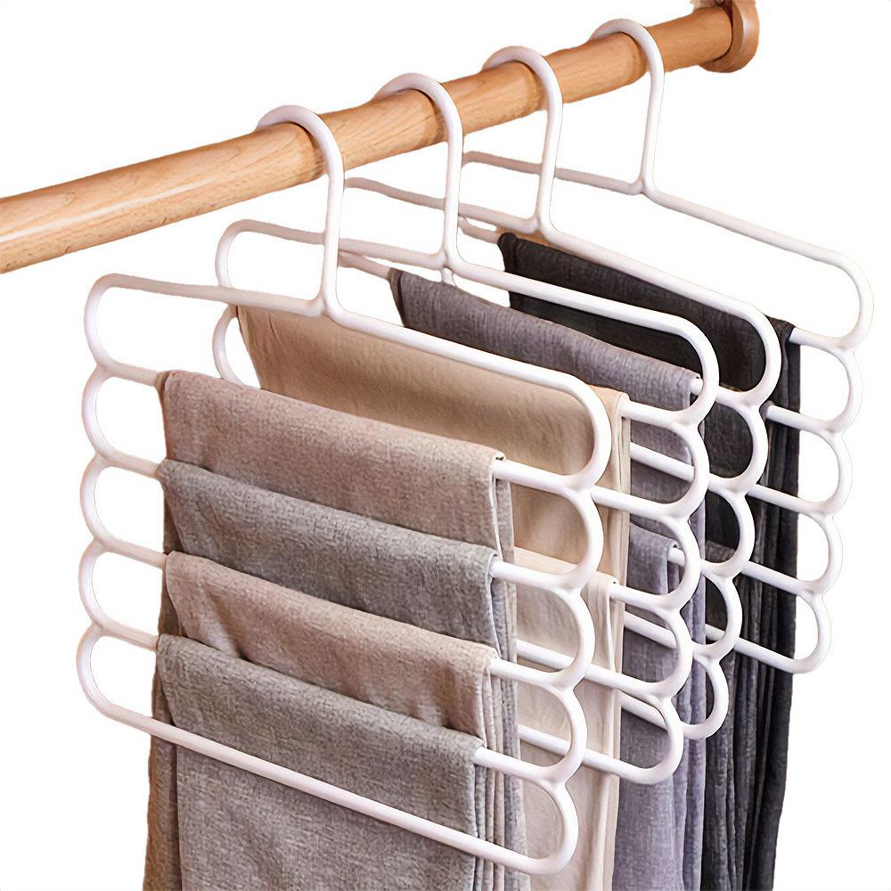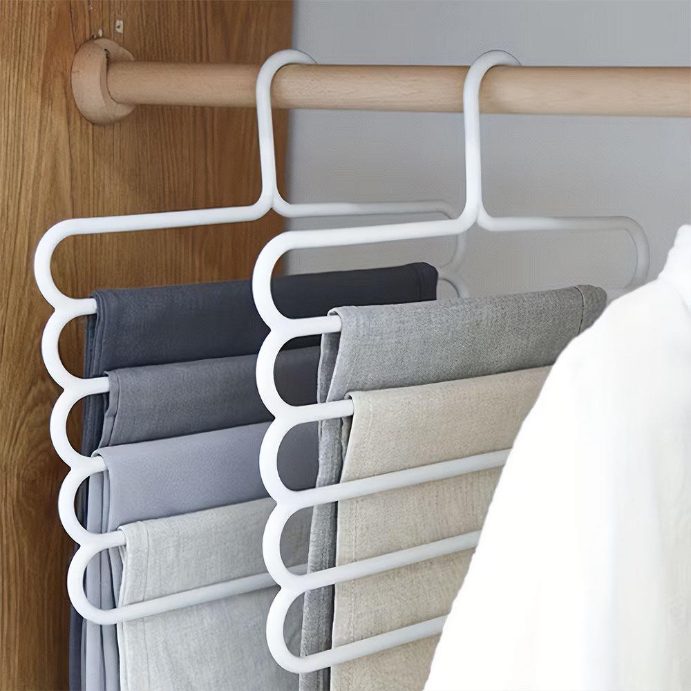Acest umeraș pentru pantaloni vă economisește cu adevărat mult spațiu în dulap! Pe un singur umeraș puteți agăța până la cinci perechi de pantaloni! Ceea ce reprezintă deja o mare economie de spațiu. În plus, dulapul dumneavoastră va deveni mult mai ordonat.