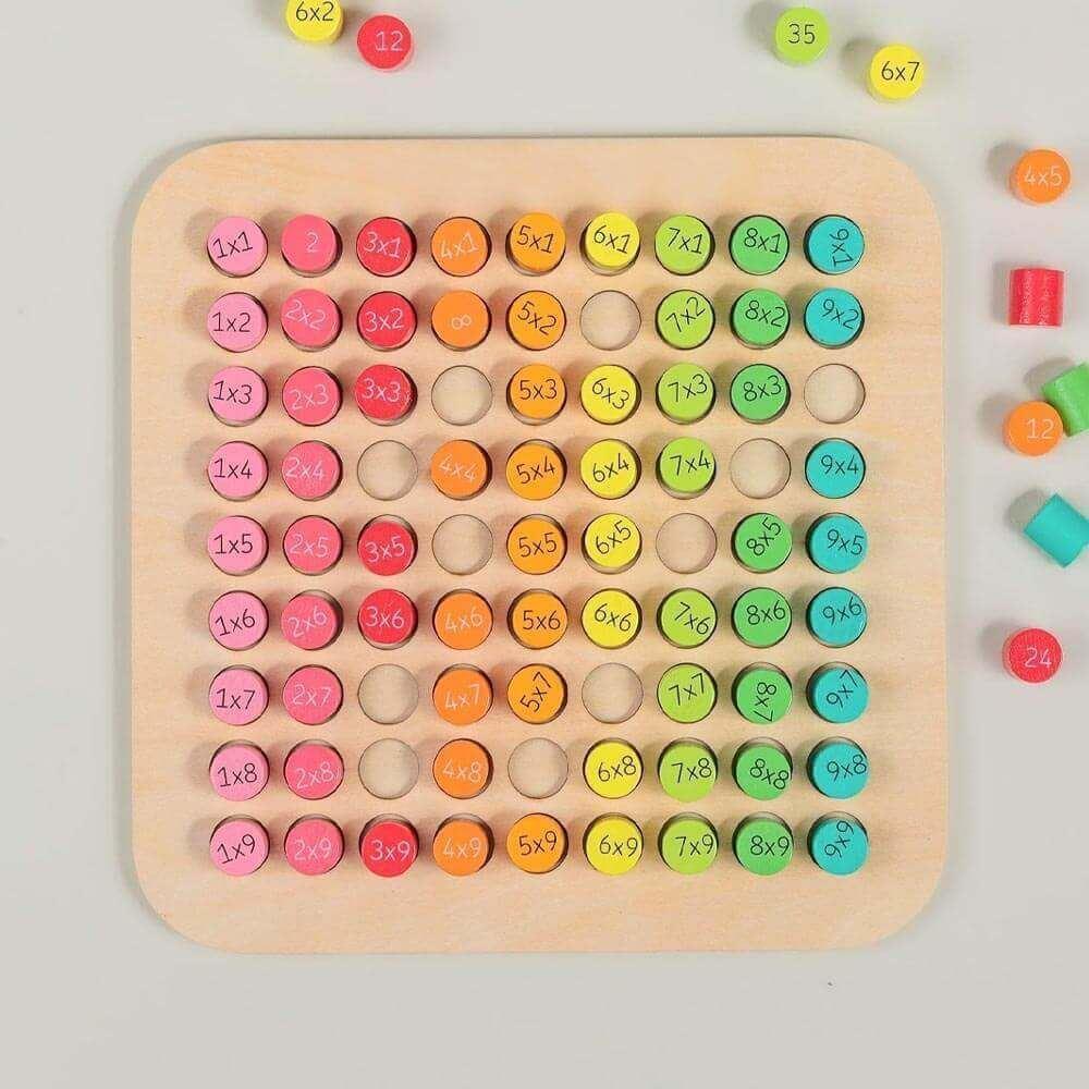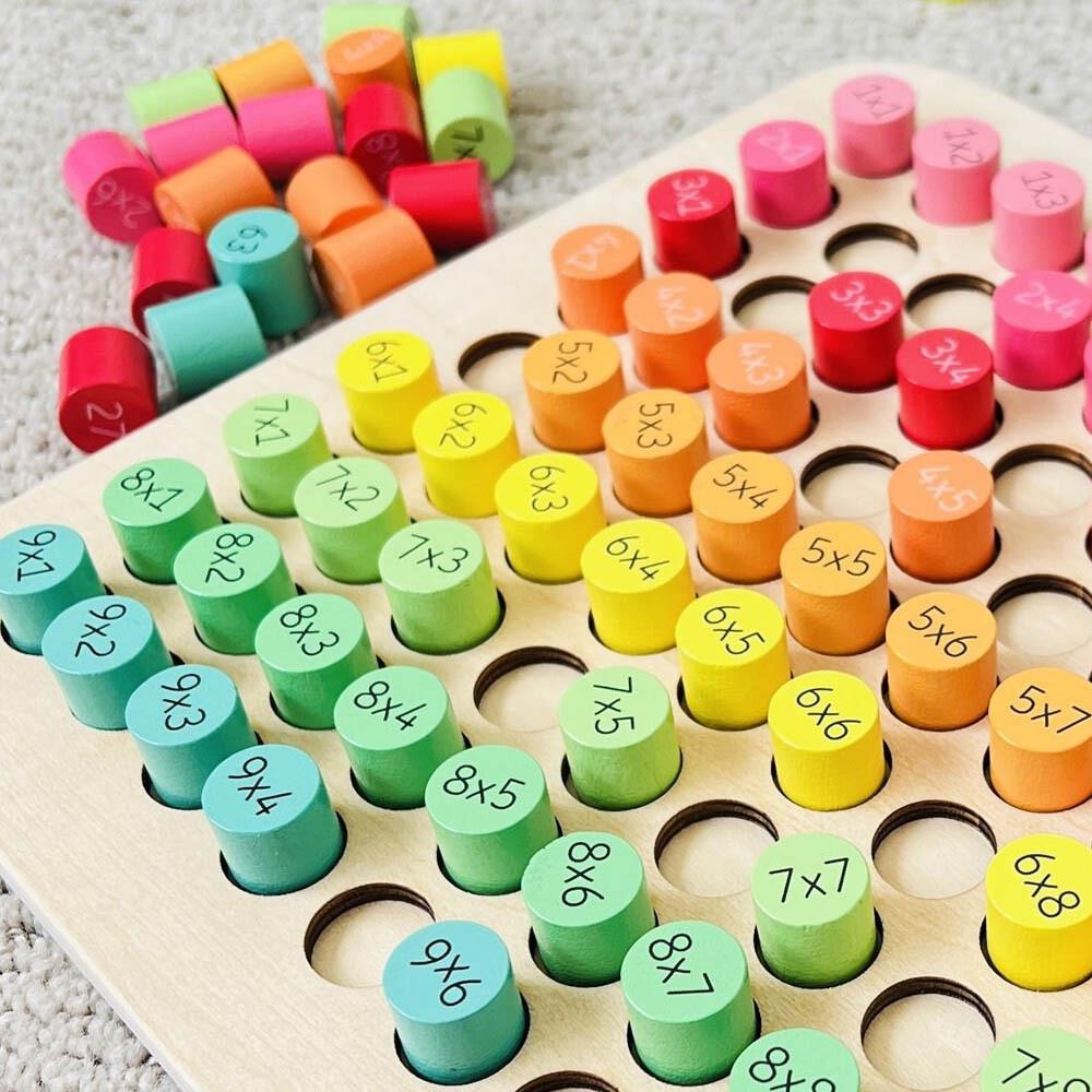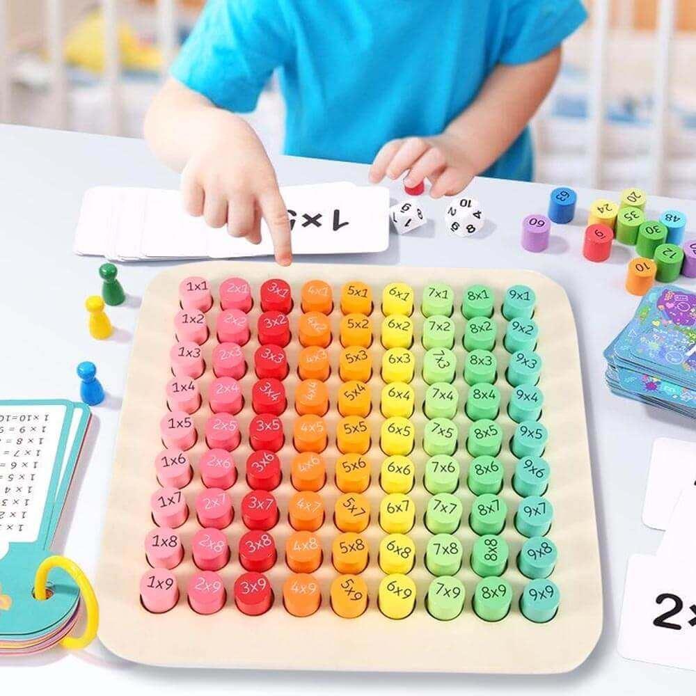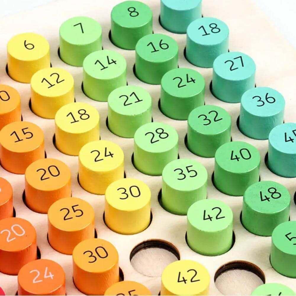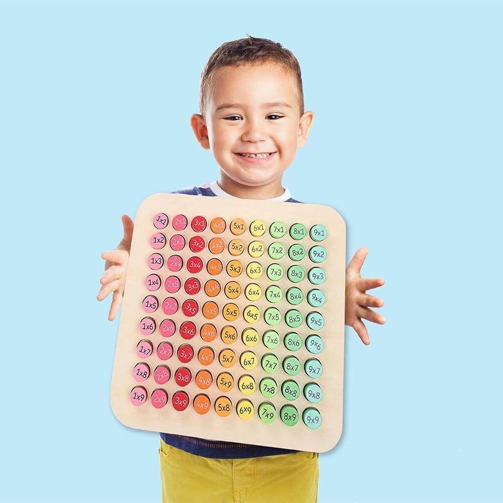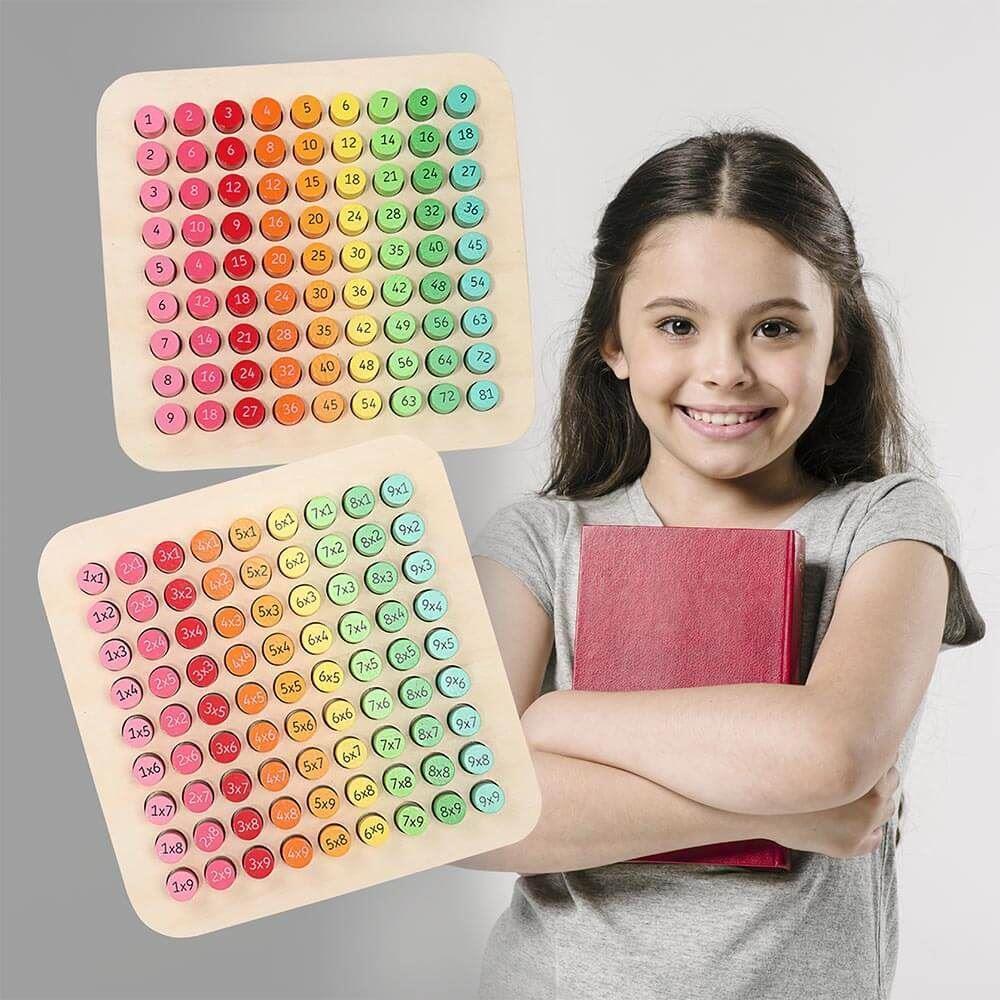 Învățare jucăușă și simplă? Cu tabla de lemn cu exemple, veți reuși! Ajutați-vă copiii să învețe această matematică de bază, prin utilizarea unui numărător veți pregăti o învățare distractivă. Numărătorul din lemn conține în total 81 de exemple. Pe o parte a piesei este întotdeauna exemplul, iar pe cealaltă parte rezultatul. Astfel puteți verifica imediat dacă rezultatul a fost corect.