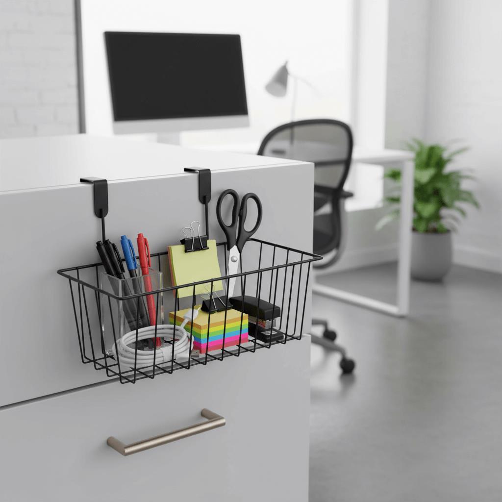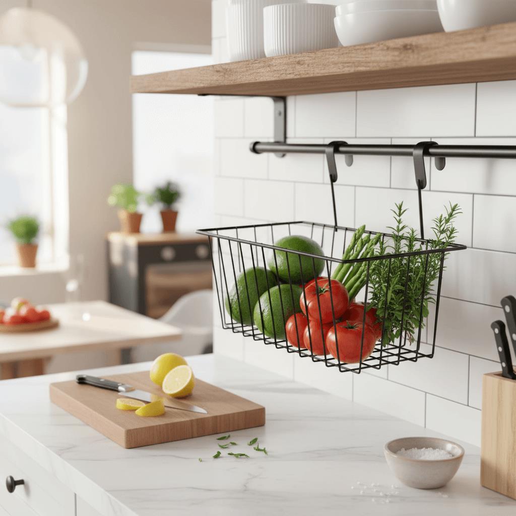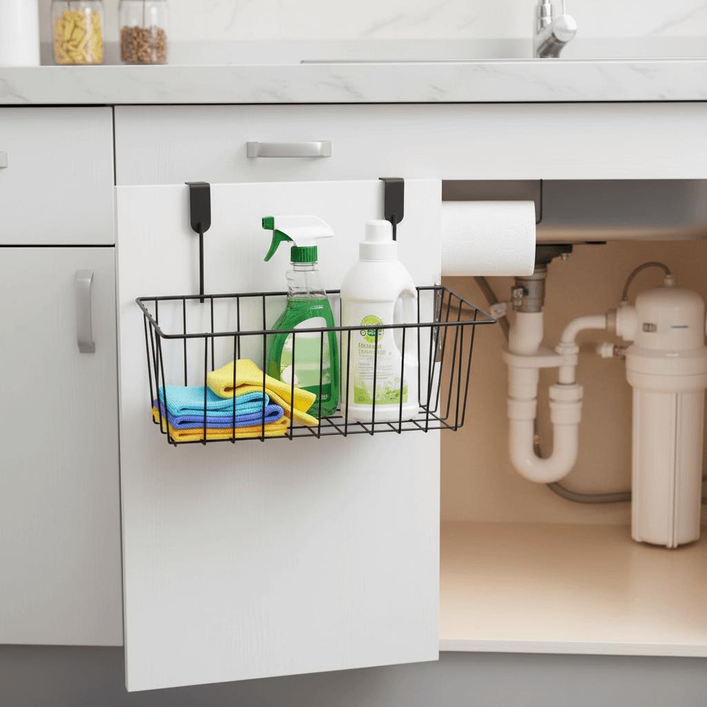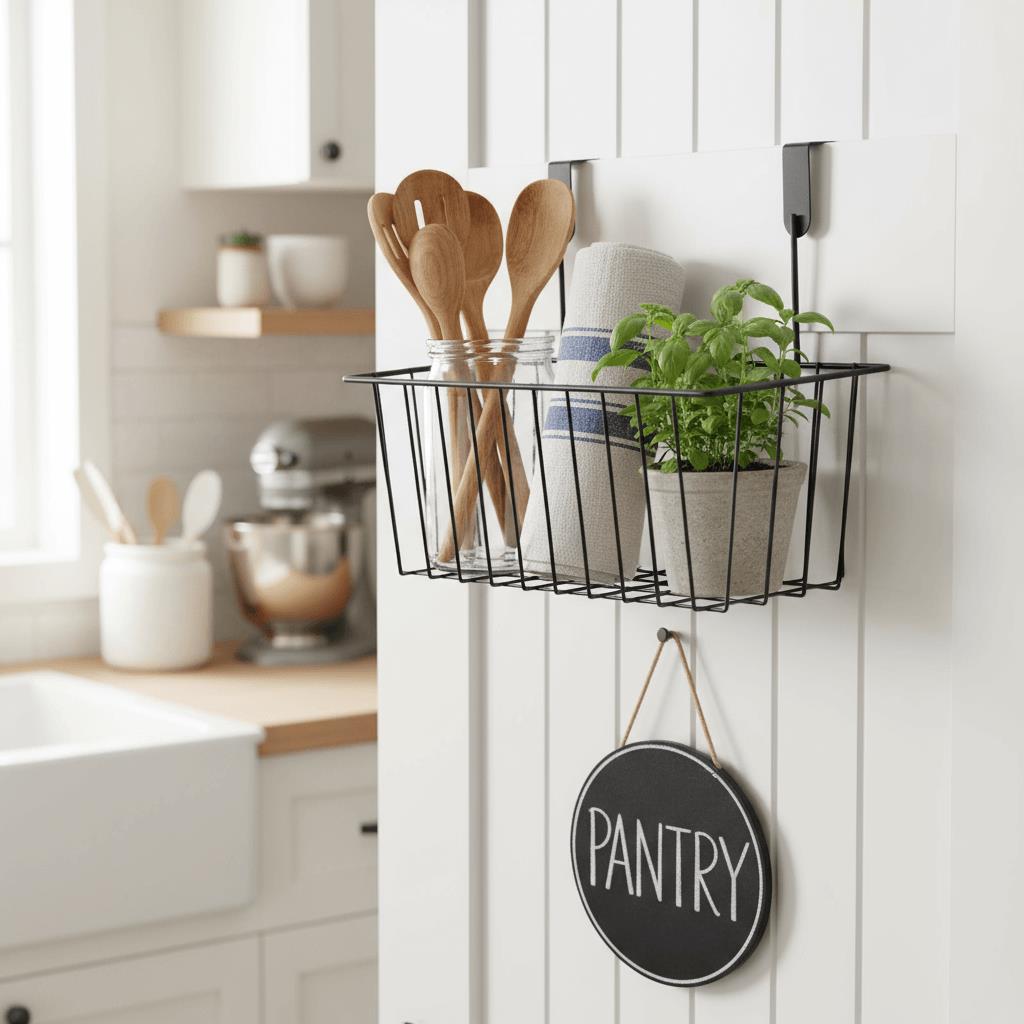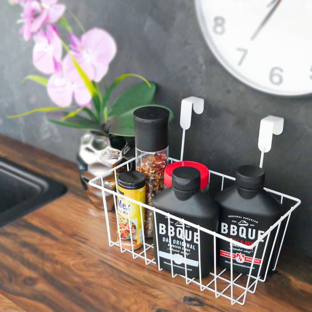 Aveți nevoie să vă organizați câteva lucruri acasă, în bucătărie sau baie, dar nu aveți suficient spațiu? Acest coș suspendat se agață pe ușa dulapului de bucătărie sau a altei piese de mobilier, iar în el puteți depozita prosoape, accesorii de bucătărie sau produse cosmetice. De acum înainte, nu va mai fi dezordine în încăpere. Veți avea la dispoziție doar un spațiu ordonat.