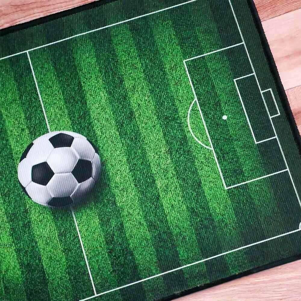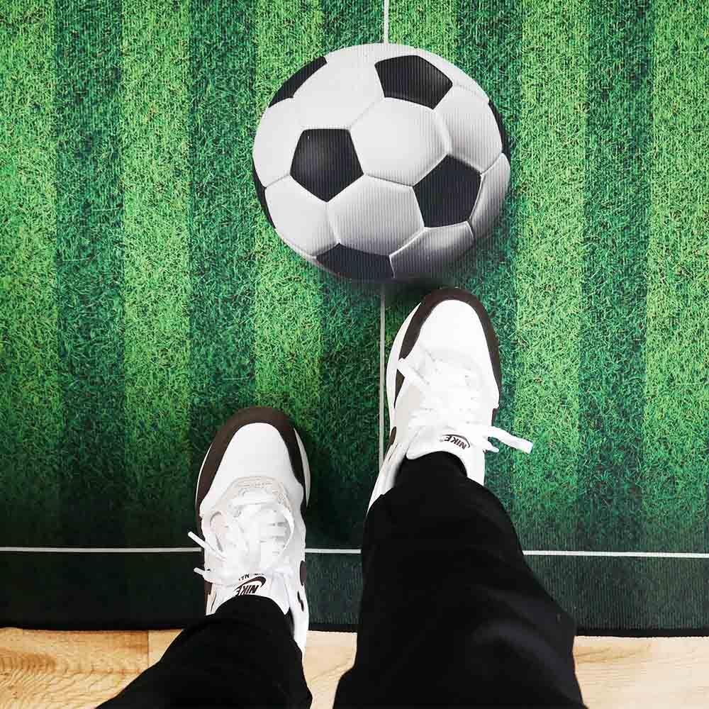 Cu acest covor cu tematică de teren de fotbal veți reuși cu siguranță să surprindeți! Este ideal atât în camera copiilor, unde micul sportiv se va juca cu plăcere pe el, cât și în birou sau în clubul bărbaților, unde meciurile de fotbal sunt luate în serios.