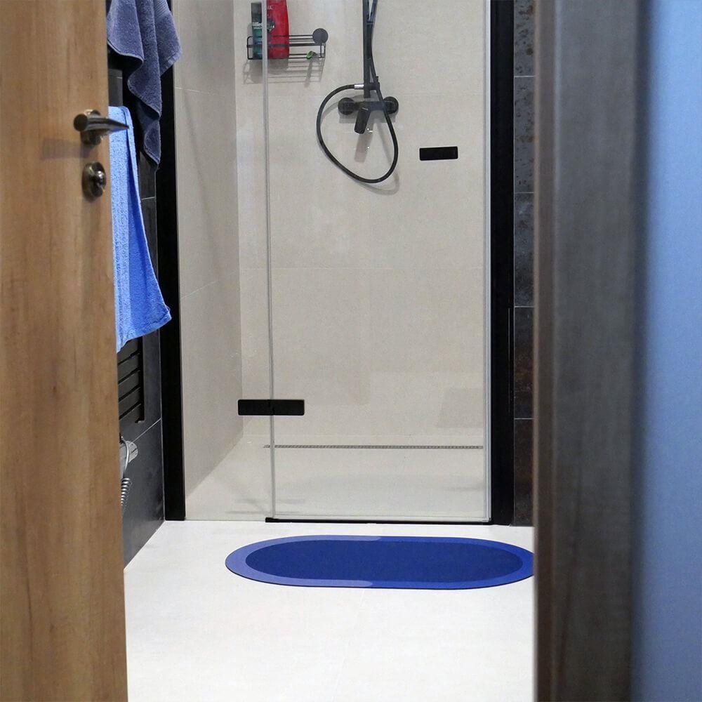 Această covoraș antiderapant va fi un accesoriu de neînlocuit în baia dumneavoastră. Are proprietăți excelente de absorbție, datorită cărora absoarbe perfect apa și astfel evitați uscarea prelungită. Covorașul este confecționat dintr-un material flexibil, poate fi ușor rulat sau scuturat. Un alt avantaj îl reprezintă textura antiderapantă de pe partea inferioară a covorașului. Această textură asigură aderența la podea, astfel încât covorașul nu se va mișca deloc. Acest lucru este deosebit de util când ieșiți din cabina de duș sau din cadă. Cu acest covoraș nu mai trebuie să vă fie frică de alunecare. Covorașul are nuanțe plăcute de albastru și va adăuga luminozitate băii dumneavoastră. Poate fi folosit nu numai în baie sau la toaletă, ci și ca suport sub bolul pentru câine sau pisică.