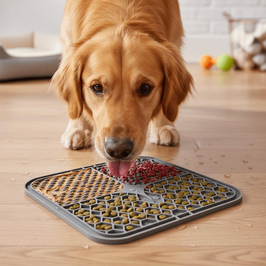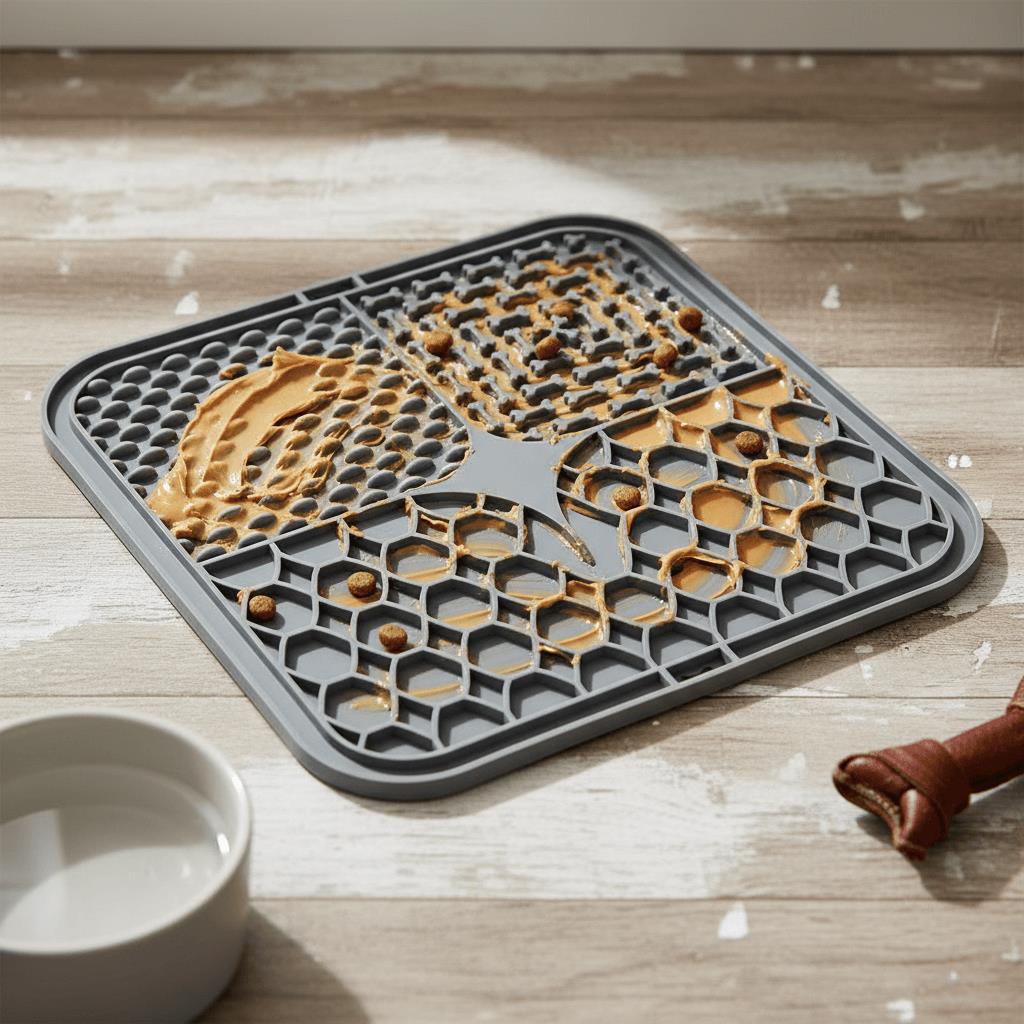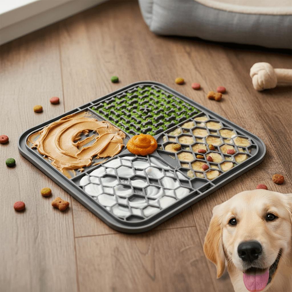 Tăvița de lins din silicon este un accesoriu excelent pentru fiecare stăpân de câine care dorește să încetinească hrănirea animalului său de companie și, în același timp, să îi ofere distracție. Pe tăviță se pot întinde conserve, paste sau recompense moi, pe care câinele le linge treptat. Texturile variate de pe suprafață îngreunează accesul la mâncare, astfel că câinele petrece mai mult timp lingând și se distrează pentru mai mult timp. Acest proces nu doar că încetinește hrănirea, dar ajută și la gestionarea stresului.