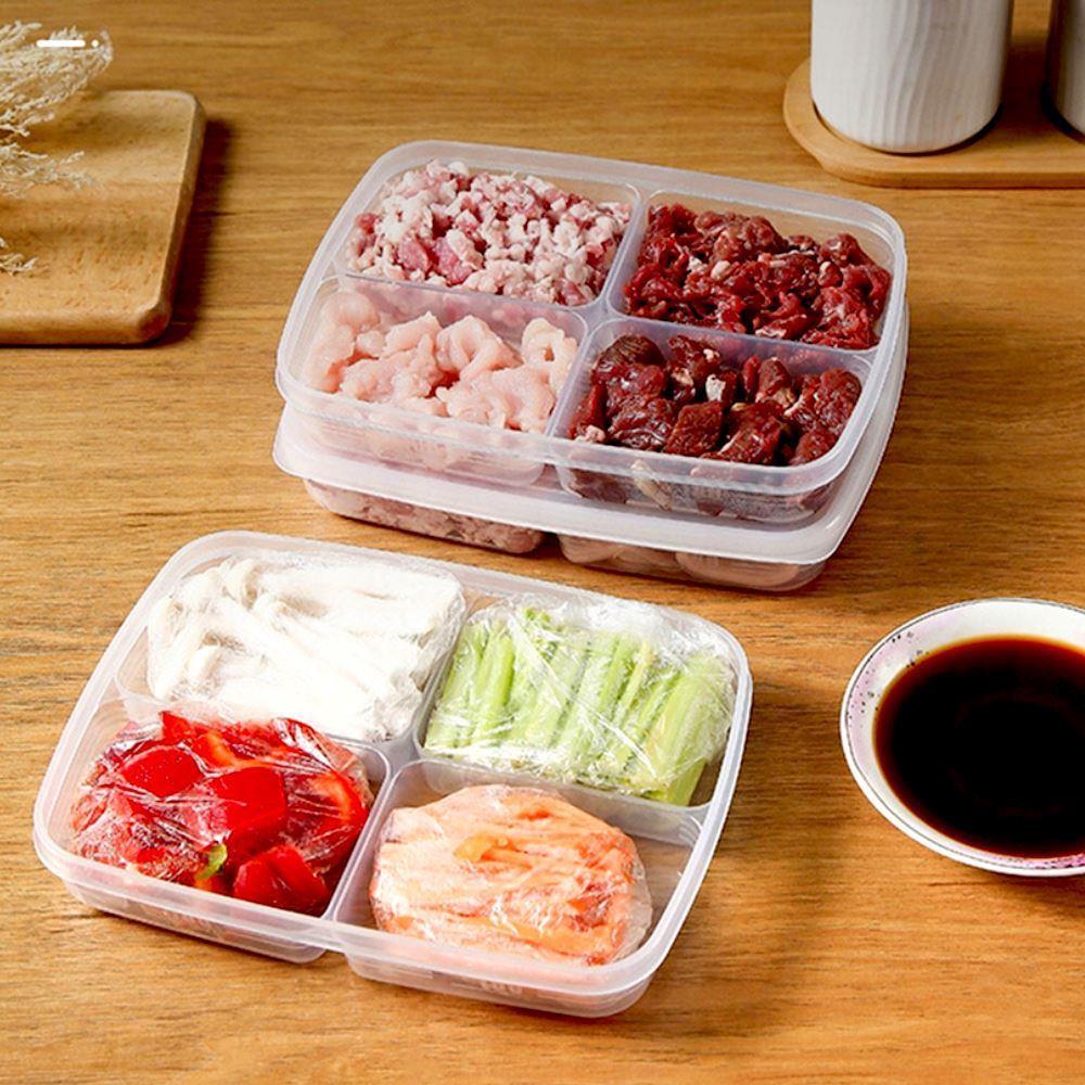 Recipientul compartimentat îți va ușura viața în multe feluri. Are 4 compartimente, astfel încât poți depozita mai multe tipuri de alimente fără amestecare neplăcută. Îți va fi de folos și pentru diverse gustări la muncă sau la școală. Poți să tai fructe sau legume și ești gata de plecare. Îți poți pune în el și prânzul gata pregătit pentru a doua zi la muncă. Datorită capacului, alimentele vor rămâne proaspete mai mult timp. Având în vedere că recipientul suportă temperaturi scăzute, depozitarea la frigider sau congelator nu este nici o problemă.