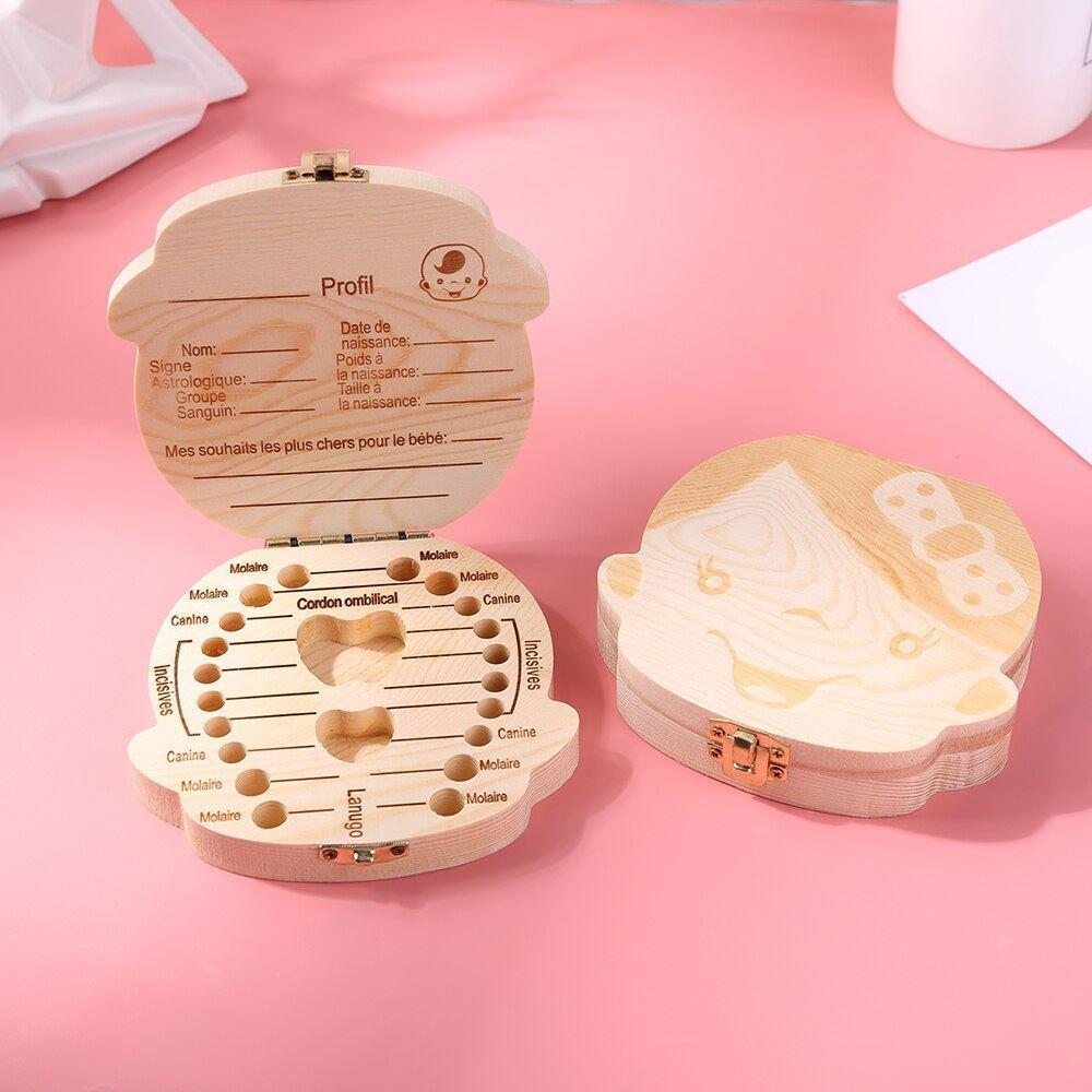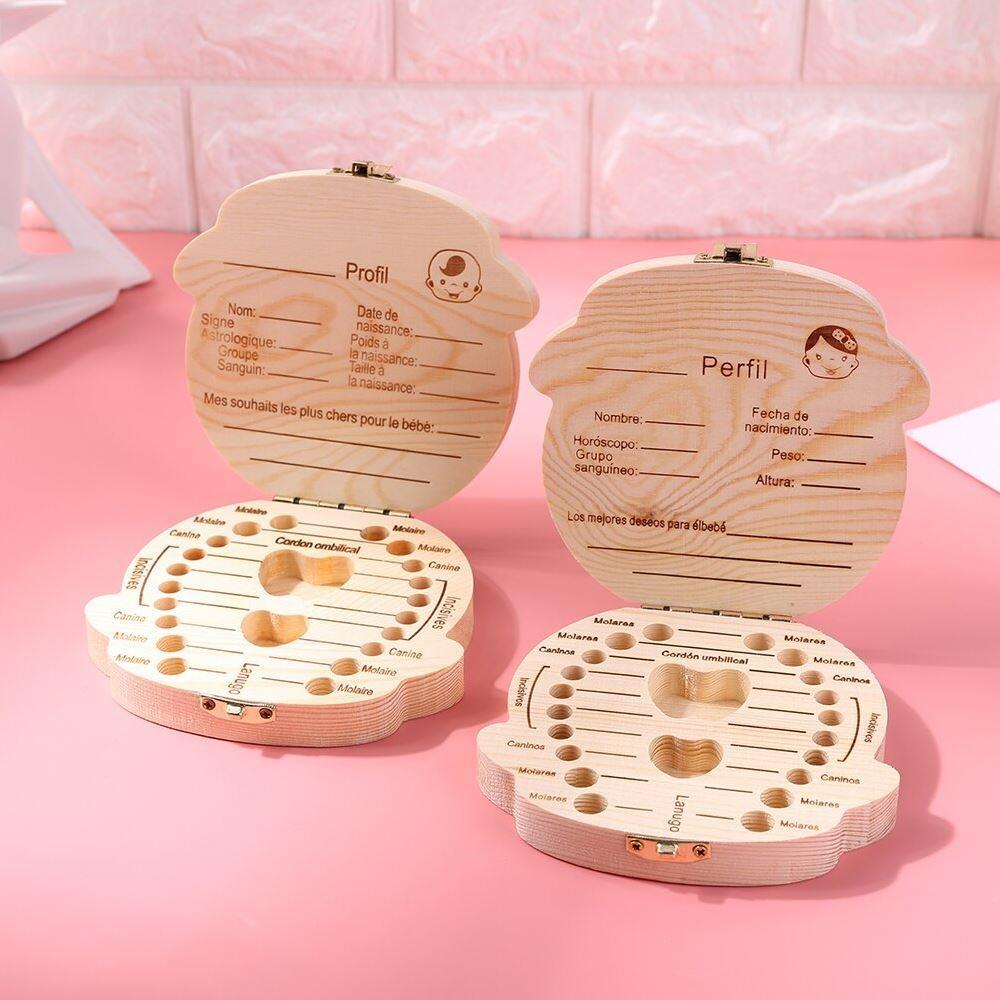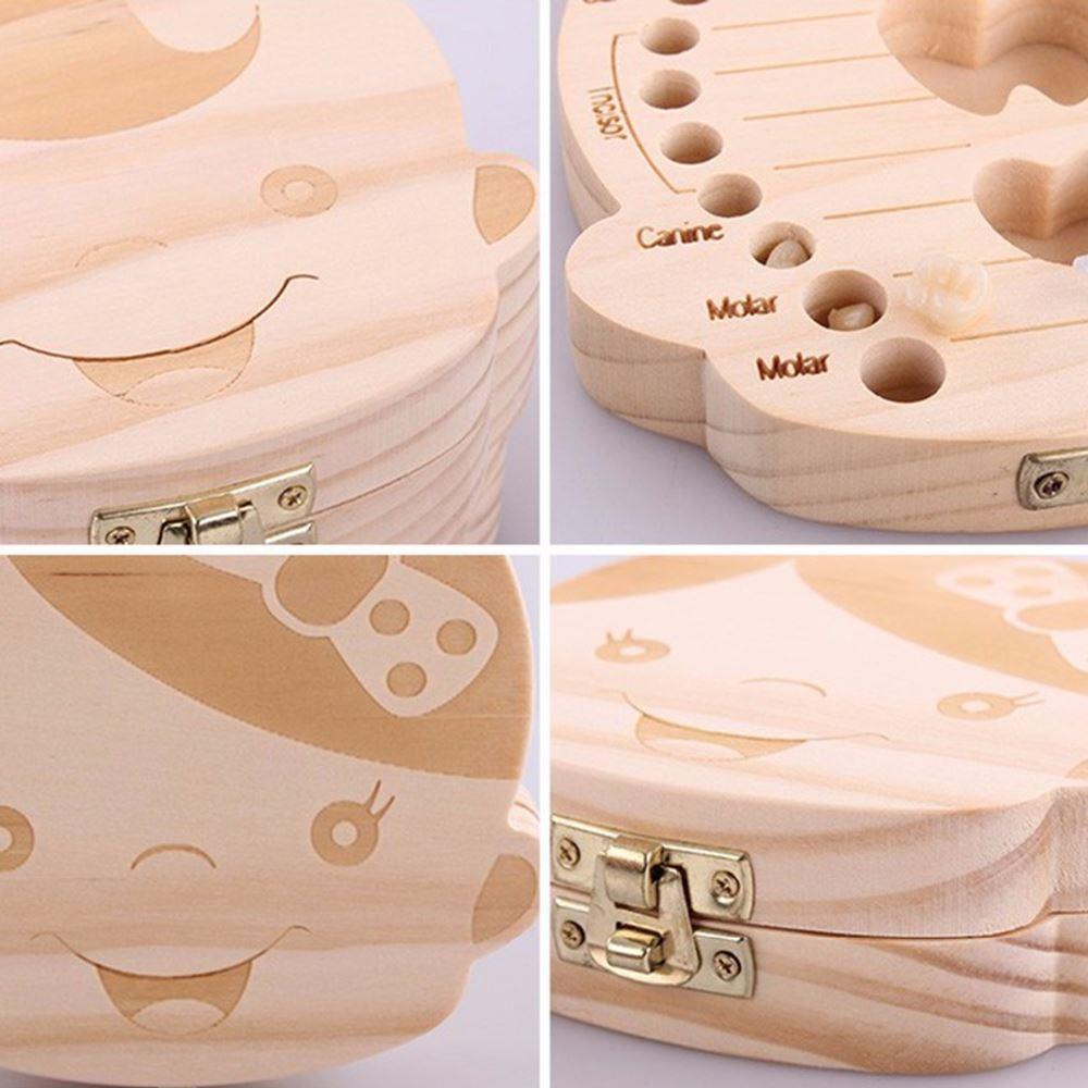 Cutiuta veselă din lemn este o cutie adorabilă pentru păstrarea comorilor copiilor dvs. Cu toții probabil nu ne amintim de primul dinte căzut și care a fost acesta. Datorită acestei cutiuțe aveți posibilitatea să păstrați dinții de lapte căzuți ai copiilor dvs., iar când vor crește, le puteți arăta aceste comori prețioase și, poate, vă veți aminti și de vreo întâmplare amuzantă.