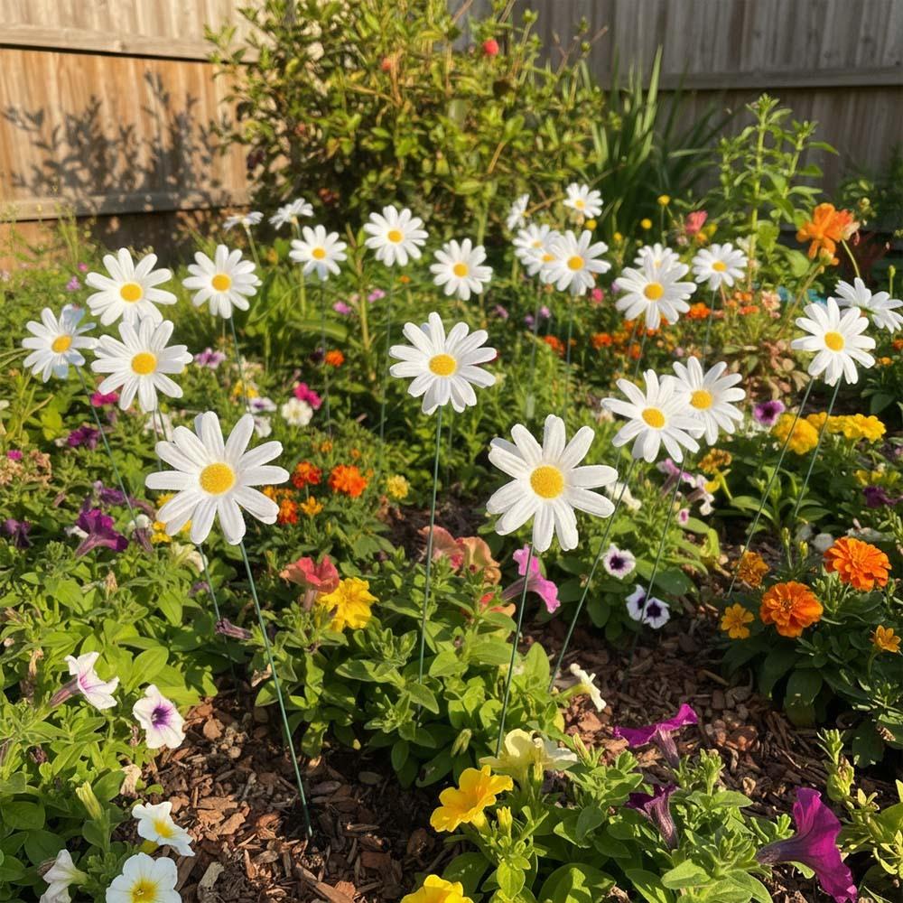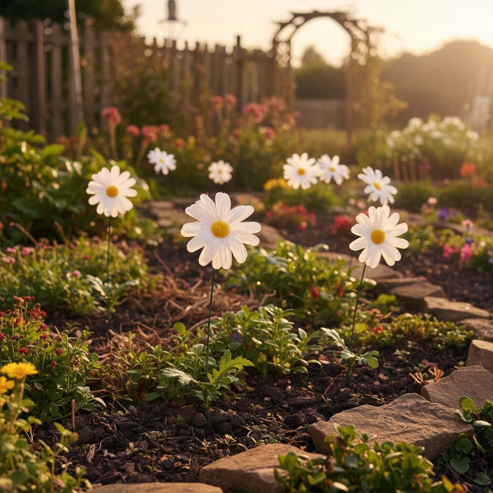 Adăugați farmecul pajiștilor înflorite în grădină – fără a fi nevoie de udare, tăiere sau altă întreținere! Ornamentele decorative în formă de margarete sunt soluția ideală pentru cei care doresc să înfrumusețeze și să lumineze imediat spațiile exterioare. Aceste ornamente se amplasează cu ușurință pe gazon, în straturi de flori, ghivece sau de-a lungul cărărilor din grădină. Rezistă la ploaie, vânt și soare puternic și vor străluci tot parcursul anului.