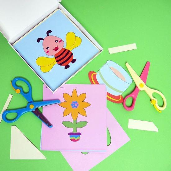 In pachet se afla foarfece sigure pentru copii din plastic, dar si foarfece pentru adulti din metal. Daca copilul are dificultati in a taia pe liniile de contur, il poti ajuta. Copiii pot juca povesti inventate parintilor cu ajutorul decupajelor, imaginatia nu are limite.