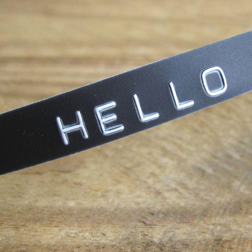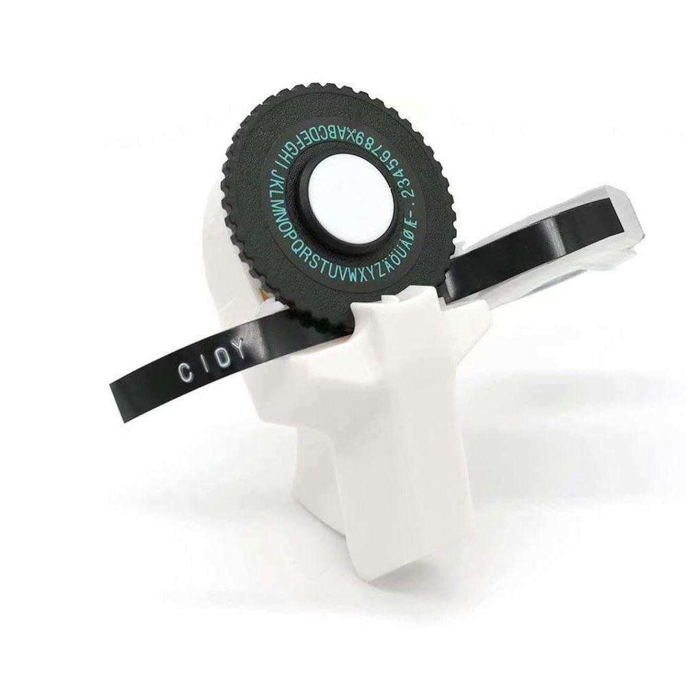 Puteți embosa inscripții pe folie transparentă sau pe folie neagră. Banda de rezervă neagră se poate comanda aici. Etichetatorul taie automat inscripția finalizată, care este apoi gata de lipit. Etichetele arată modern și elegant.