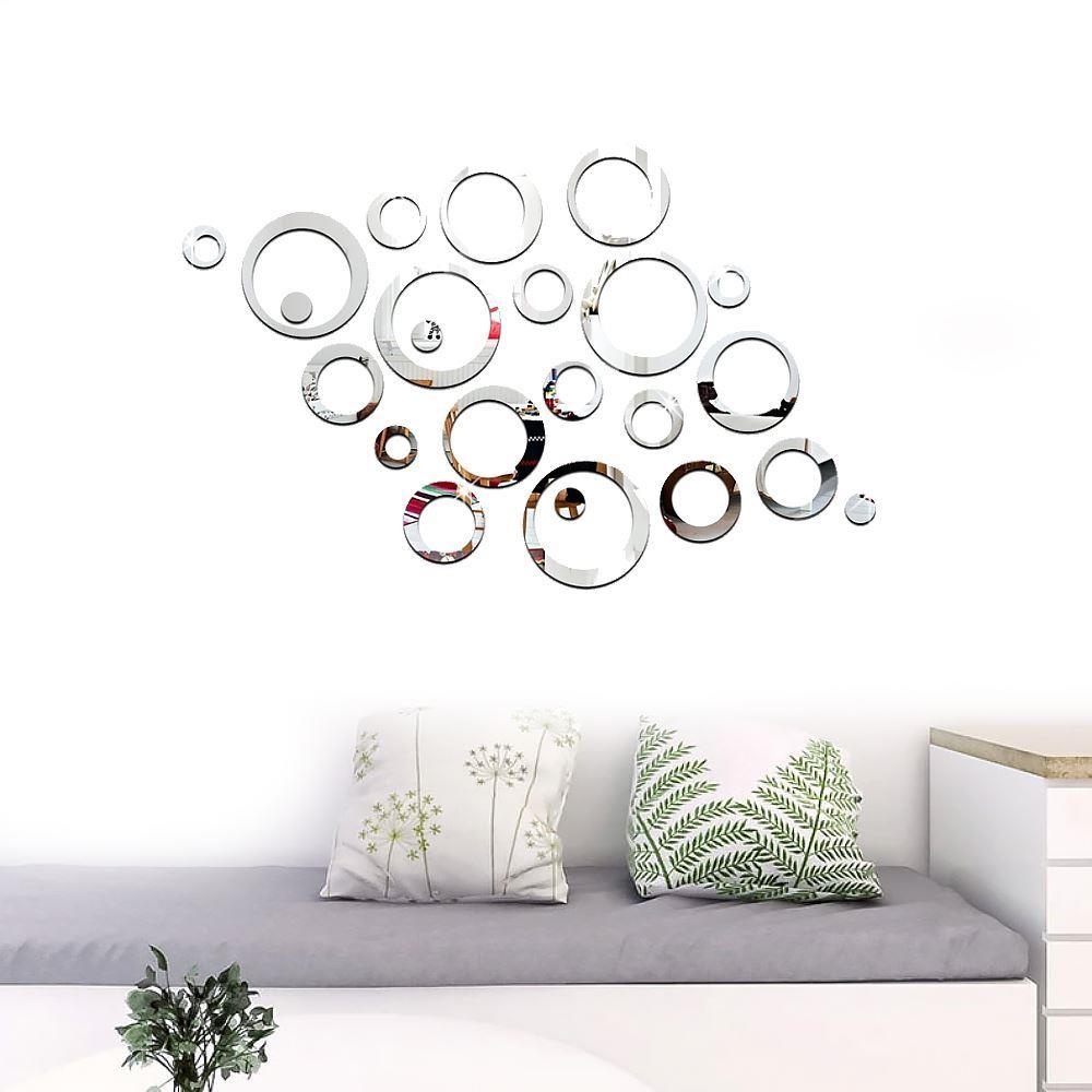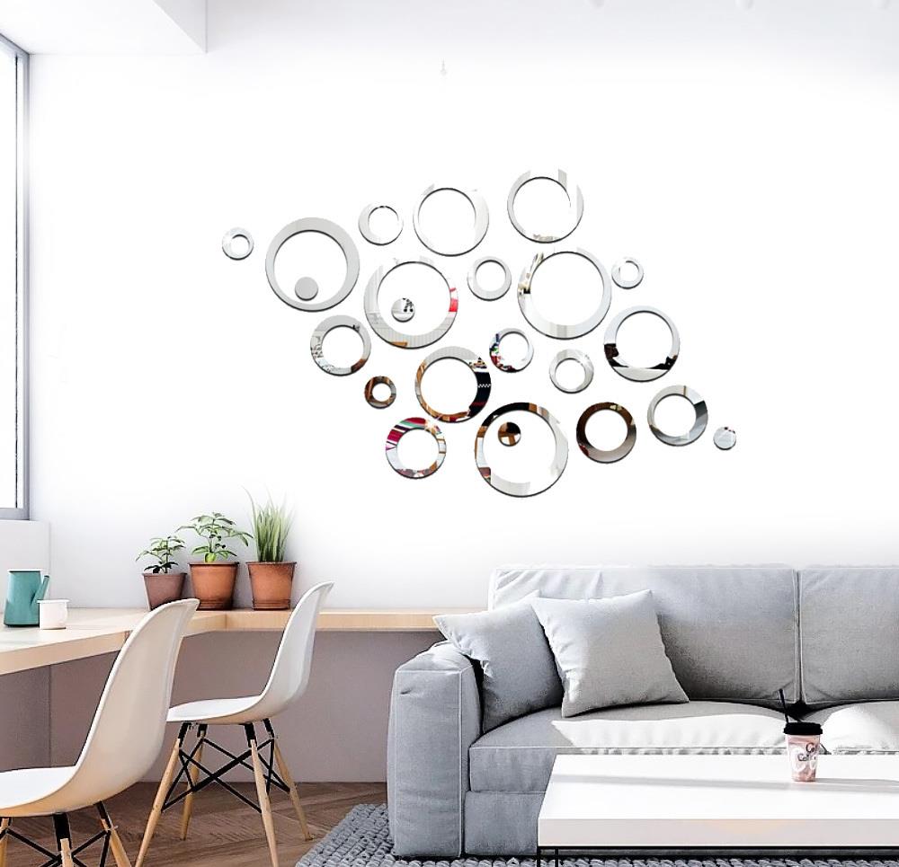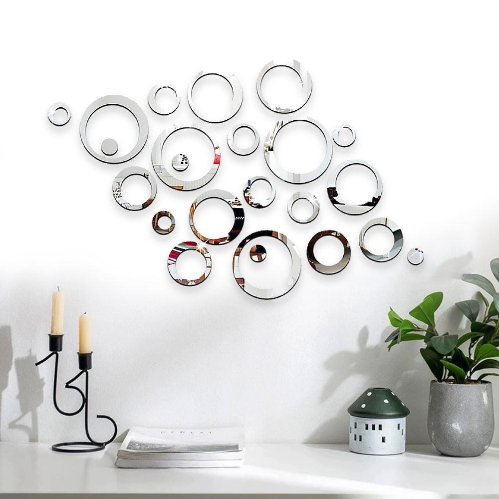 Dacă doriți să reîmprospătați interiorul, autocolantele elegante și cu gust pentru perete, sub forma unor mici oglinzi, sunt alegerea perfectă pentru a da un plus de stil. Datorită efectului de oglindă, spațiul va părea vizual mai mare.
