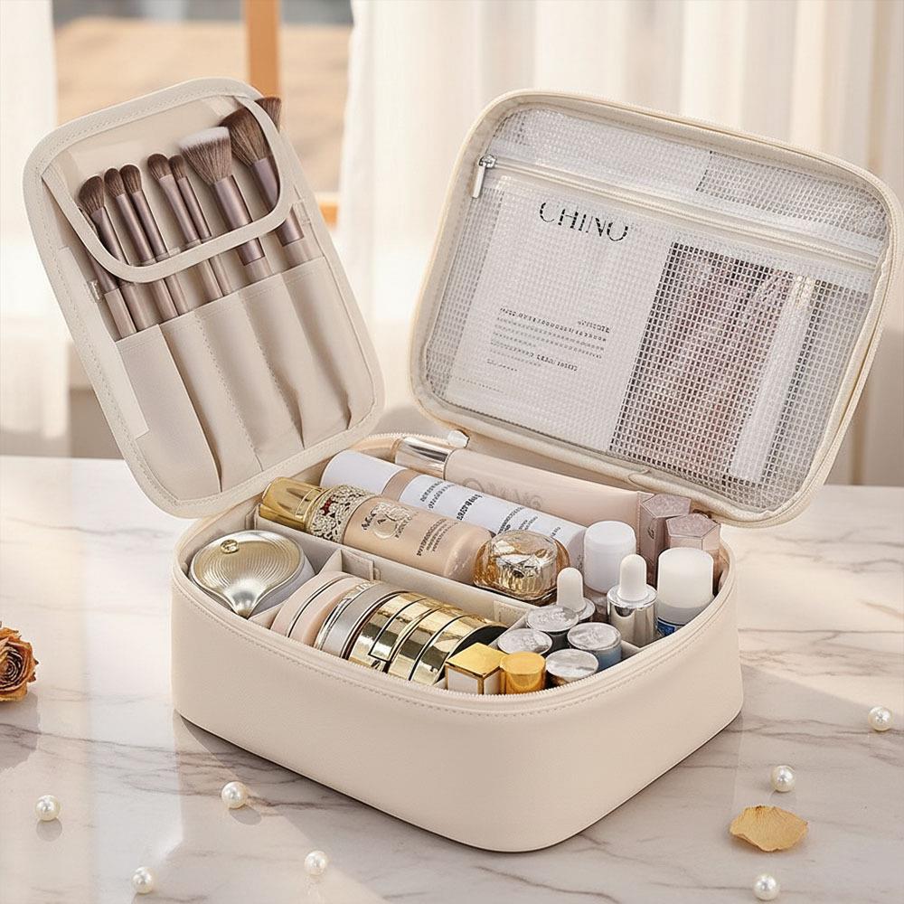 Geanta cosmetică de voiaj cu capacitate mare este partenerul indispensabil al oricărei femei care apreciază ordinea și stilul. Datorită dimensiunilor sale, oferă suficient spațiu pentru toate cosmeticele dumneavoastră – de la creme și sticluțe, la machiaj și pensule.