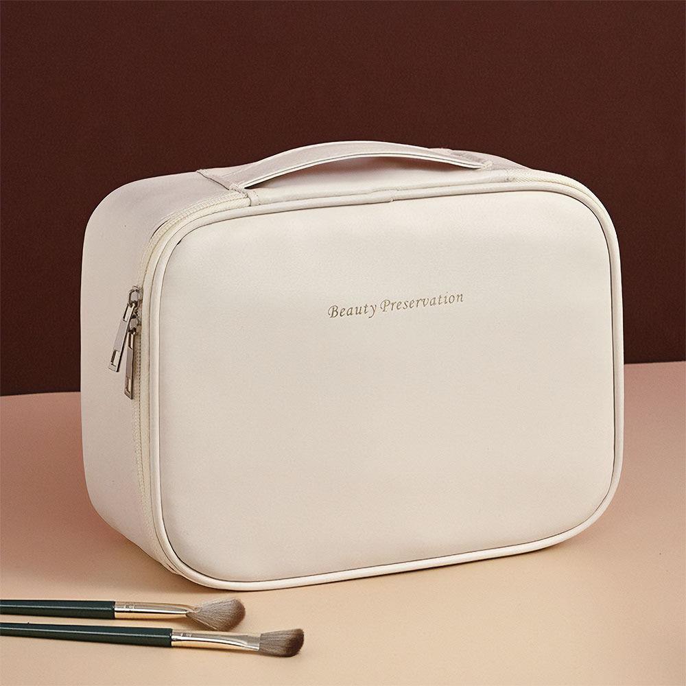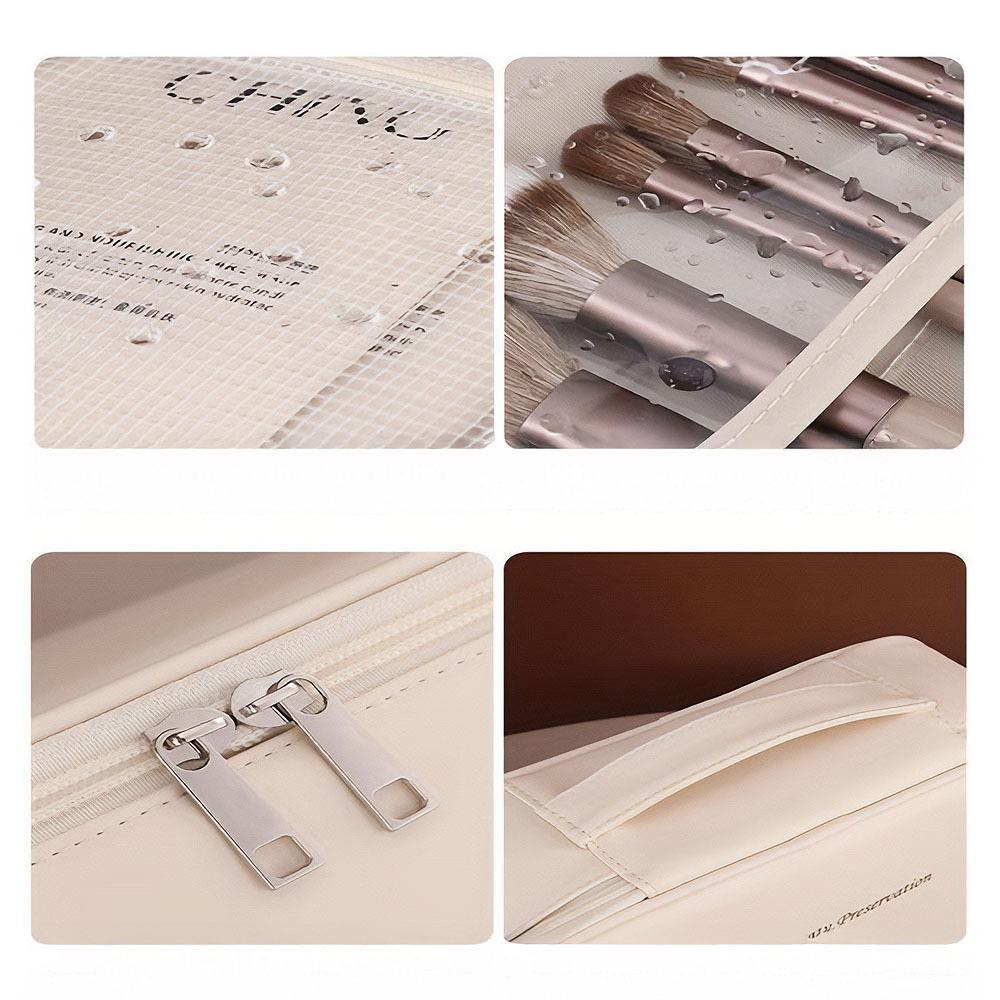 • Poșeta găzduiește pensule, sticluțe, machiaj și multe altele