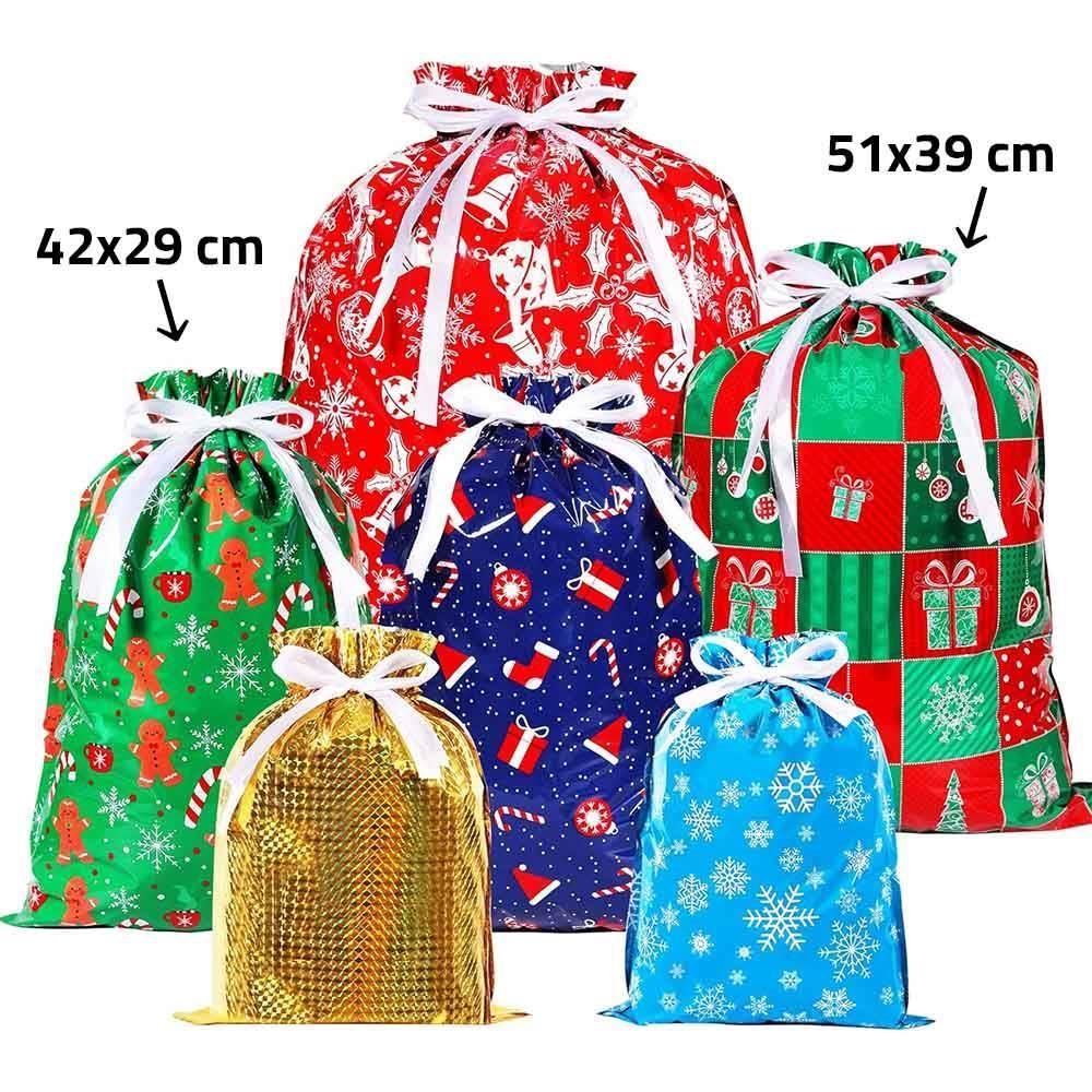Economisiți timp cu aceste pungi de Crăciun ingenioase, care vă permit să ambalați cadourile în câteva secunde. Sunt, de asemenea, o modalitate excelentă de a reduce deșeurile, deoarece destinatarul le poate folosi din nou. Aduceți un strop de magie de Crăciun sub brad cu aceste pungi cadou frumoase și practice, prevăzute cu șnur de închidere.