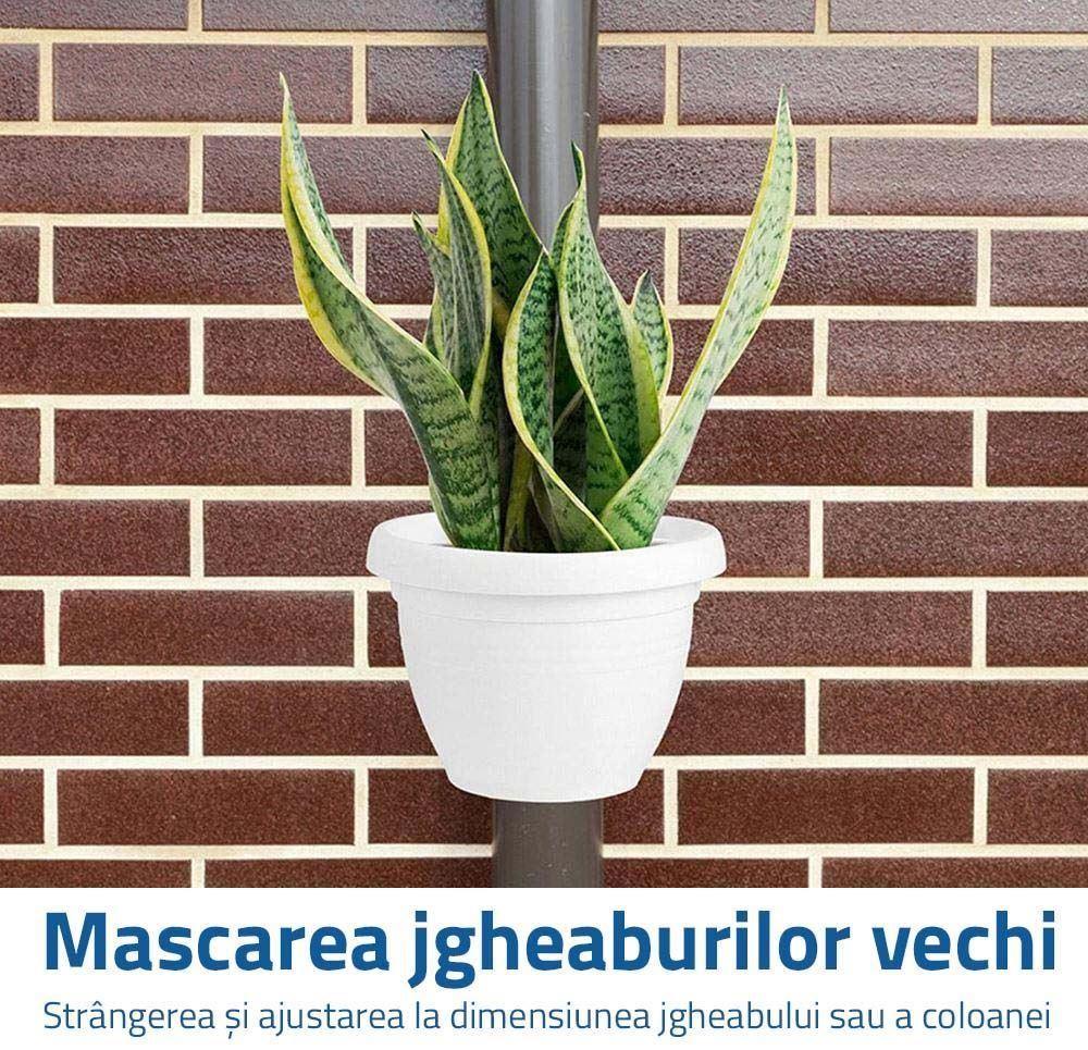 Ghiveciul pentru stâlp este un truc senzațional pentru toți grădinarii. Prin intermediul ghiveceilor, veți îmbunătăți aspectul jgheaburilor deteriorate sau vechi. Prin decorarea cu un ghiveci, veți adăuga un punct de atracție oricărui stâlp din jurul casei sau grădinii. Ghivecele neconvenționale trebuie doar înfășurate în jurul stâlpului sau jgheabului dorit. Le strângeți și le ajustați în funcție de dimensiunea stâlpului. Ghivecul este disponibil în culoare albă universală.