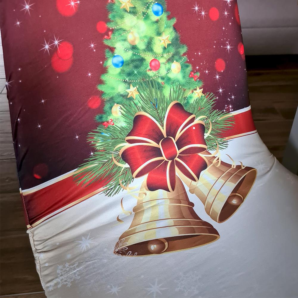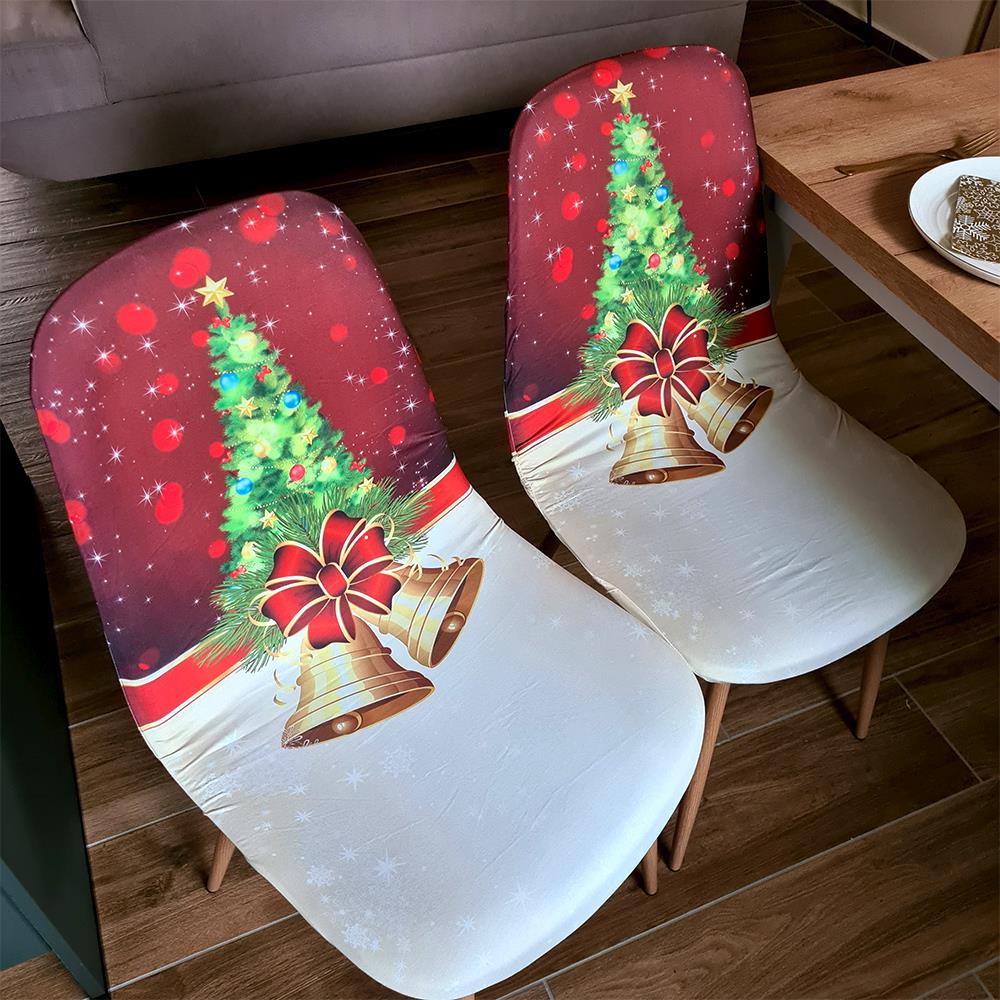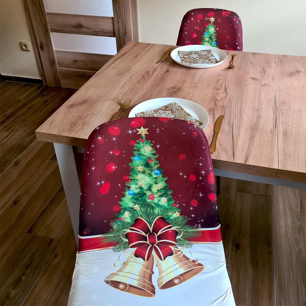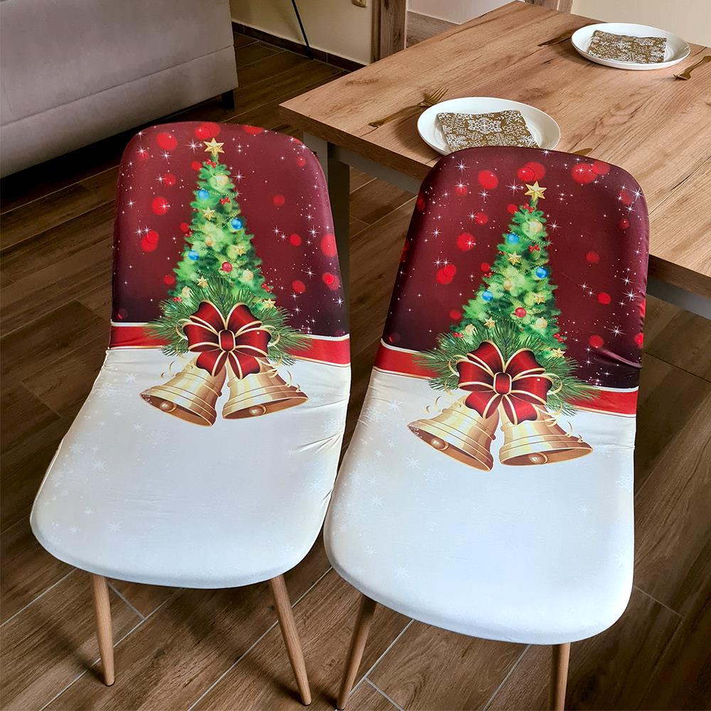 Huse pentru scaune cu motive de Crăciun - brăduț cu clopoței