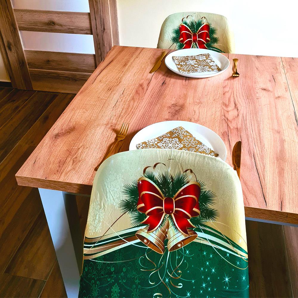 Huse pentru scaune cu motive de Crăciun - eleganță de Crăciun verde și aurie