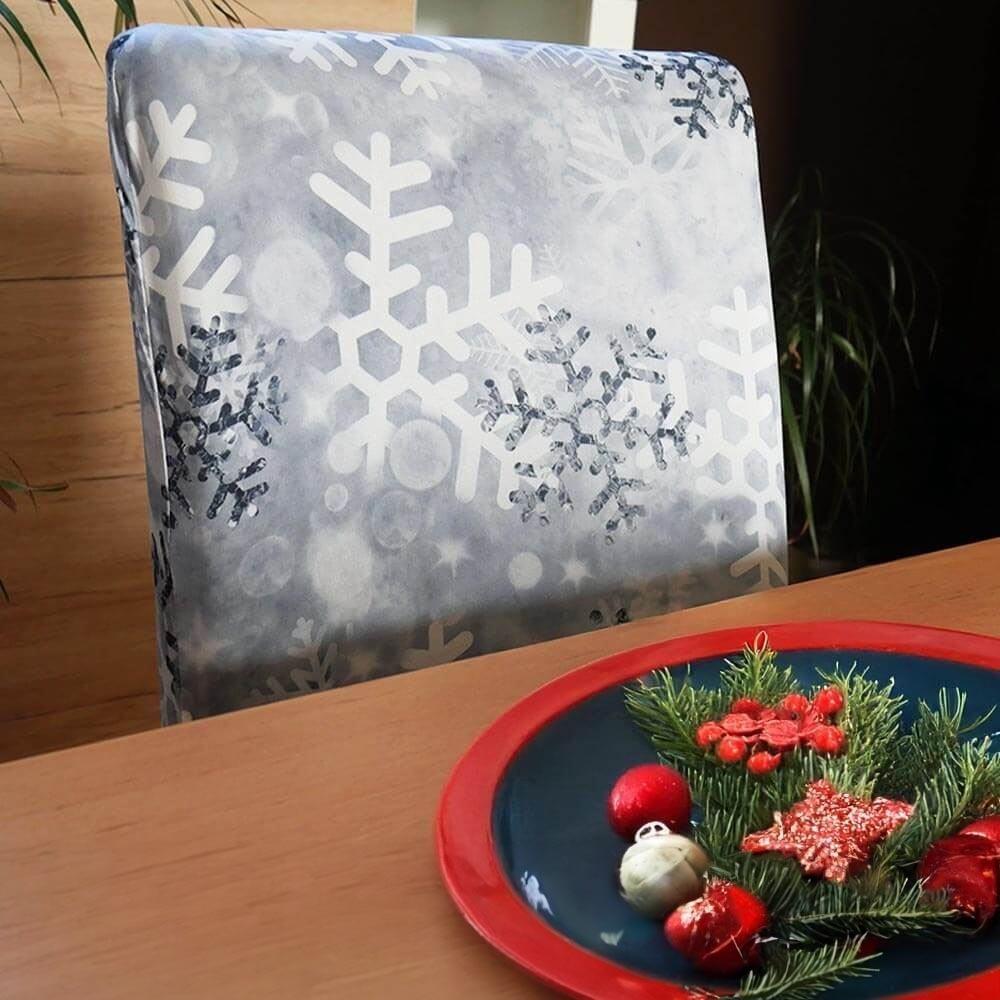 Huse pentru scaune cu motive de Crăciun - fulgi