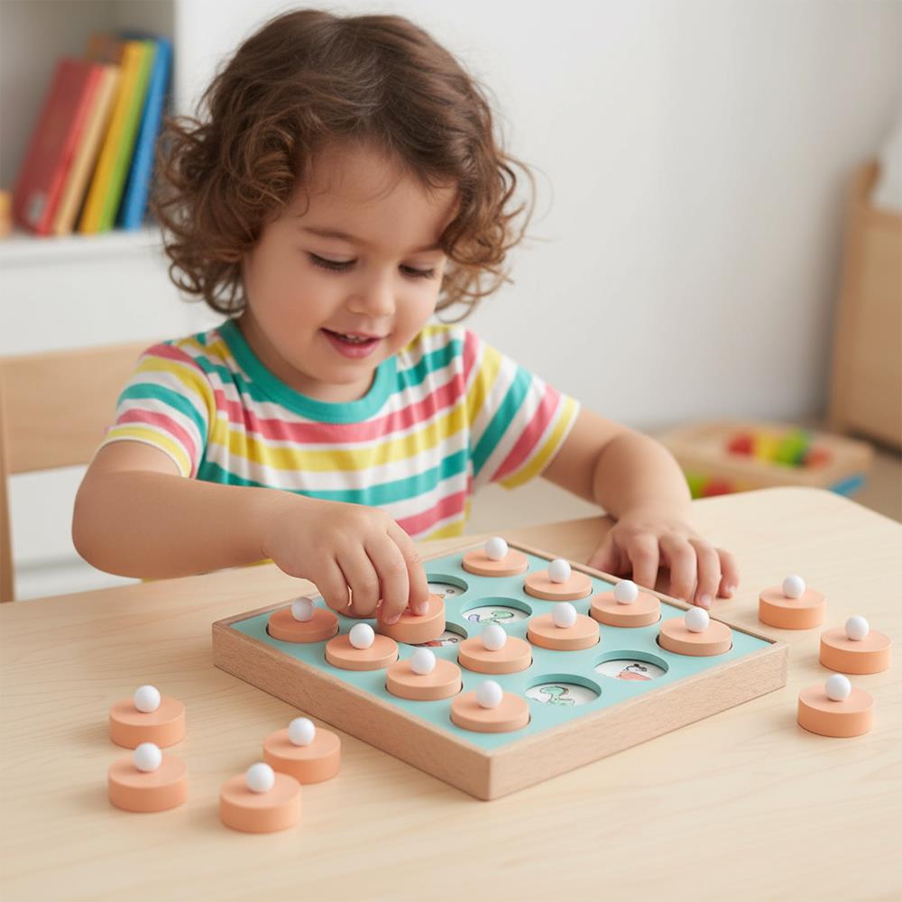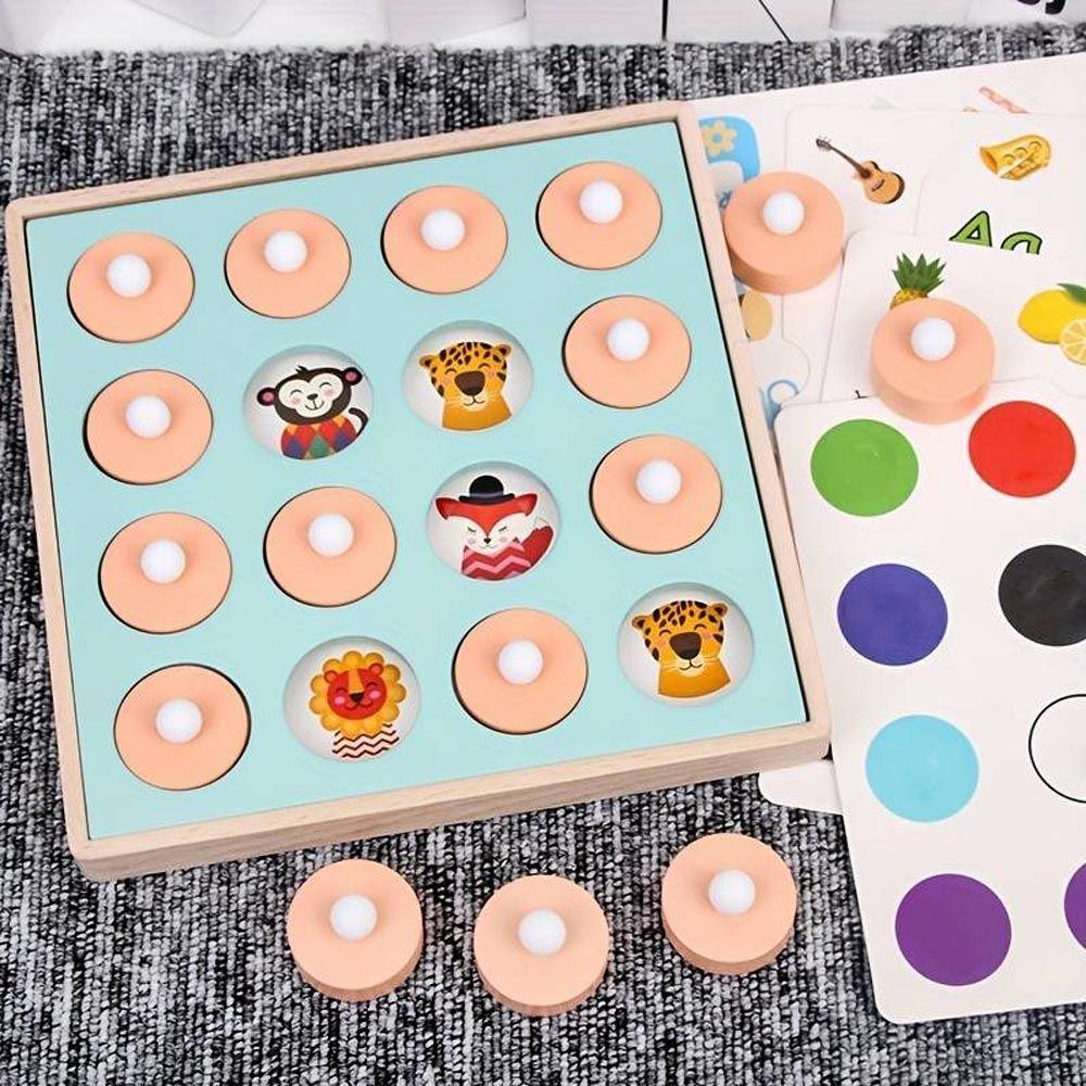 Scopul jocului este de a identifica modelele corecte. Jocul este realizat din lemn de calitate și va distra întreaga familie.