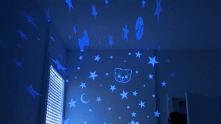 Jucăria de pluş cu proiector este un companion perfect pentru somnul liniștit al copiilor. Datorită căţeluşului de pluş albastru, copiii își vor depăși teama de întuneric. Proiectorul se află în burtica jucăriei de pluş și proiectează stele pe perete. Înainte de somn, acesta creează un cer stelat și în mișcare deasupra capului. Puteţi seta schimbarea culorii și rotația proiecției pe jucărie. Aceasta funcţionează pe bază de baterii stilou, care nu sunt incluse în pachet. Jucăria de pluş, lampa de veghe și proiectorul vor oferi copiilor noștri o noapte bună!