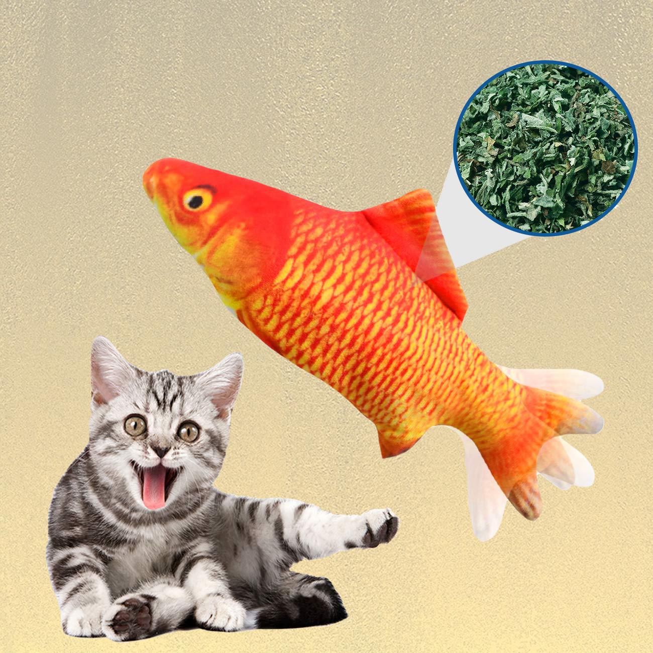 Jucăria pentru pisici în formă de pește va atrage cu siguranță atenția pisicilor. Peștele arată ca unul adevărat, ceea ce îl face foarte atractiv. În pachet se află o pungă cu iarbă-mâței (Nepeta cataria). Dacă o introduceți în pește, pisica nu se va mai dezlipi de el. În mijlocul burții peștelui se află un fermoar, unde puteți pune punga și unde se află și comutatorul ON/OFF.