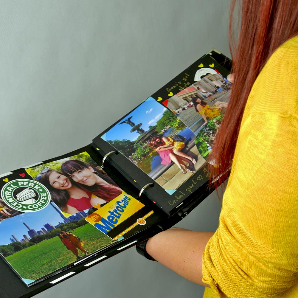 Creați un jurnal de experiențe pe tema nuntă, petrecere, vacanță sau excursie. Imaginația nu are limite și datorită markerelor colorate și elementelor decorative puteți crea împreună cu fotografiile voastre un jurnal de experiențe unic. Lăudați-vă cu jurnalul prietenilor voștri și lăsați-i să admire creativitatea și inventivitatea voastră. Cu siguranță vă veți distra și voi la răsfoirea fotografiilor. Creați un jurnal de experiențe, de exemplu, din pozele cu o prietenă sau cu familia și oferiți jurnalul drept cadou persoanelor respective!
