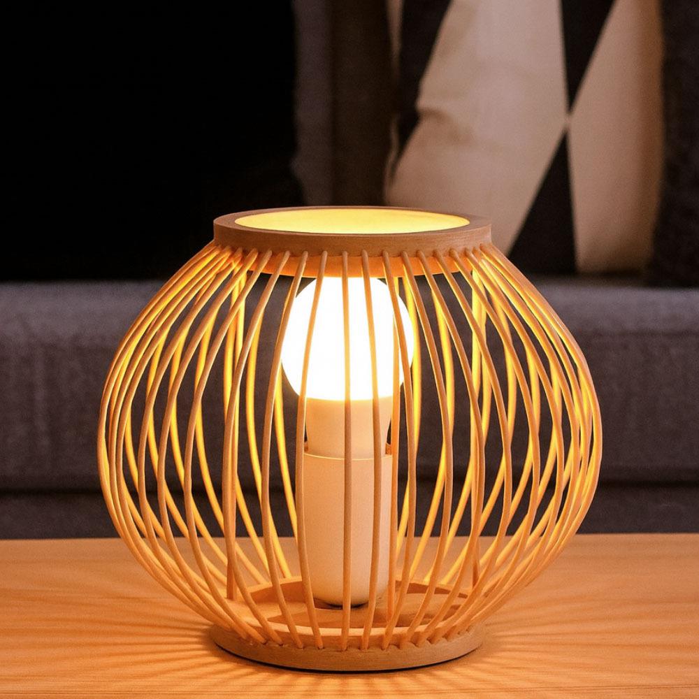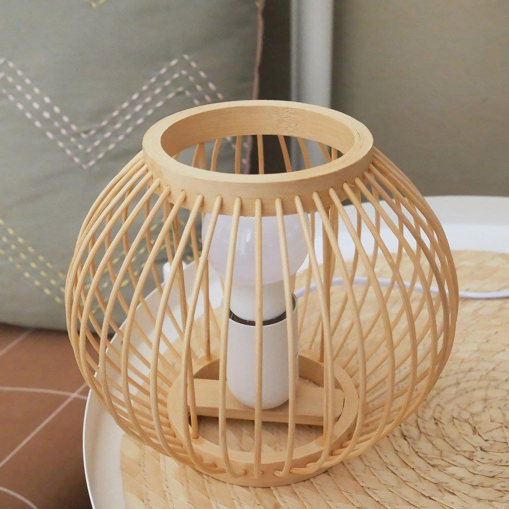 Lampă de masă din bambus cu bec LED, alb cald